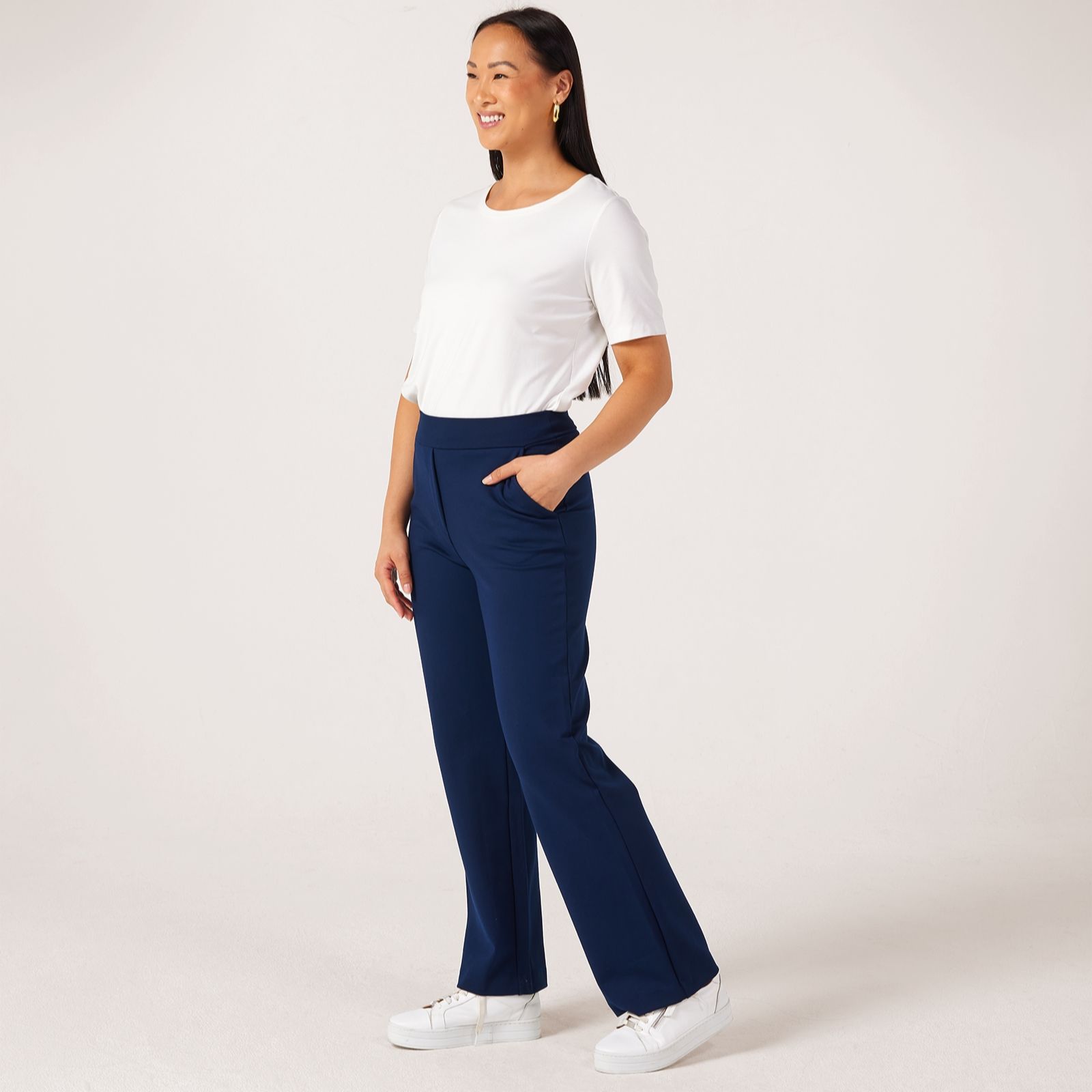 Kim & Co Strech Ponte Mary Straight Leg Petite Trousers w/Pockets