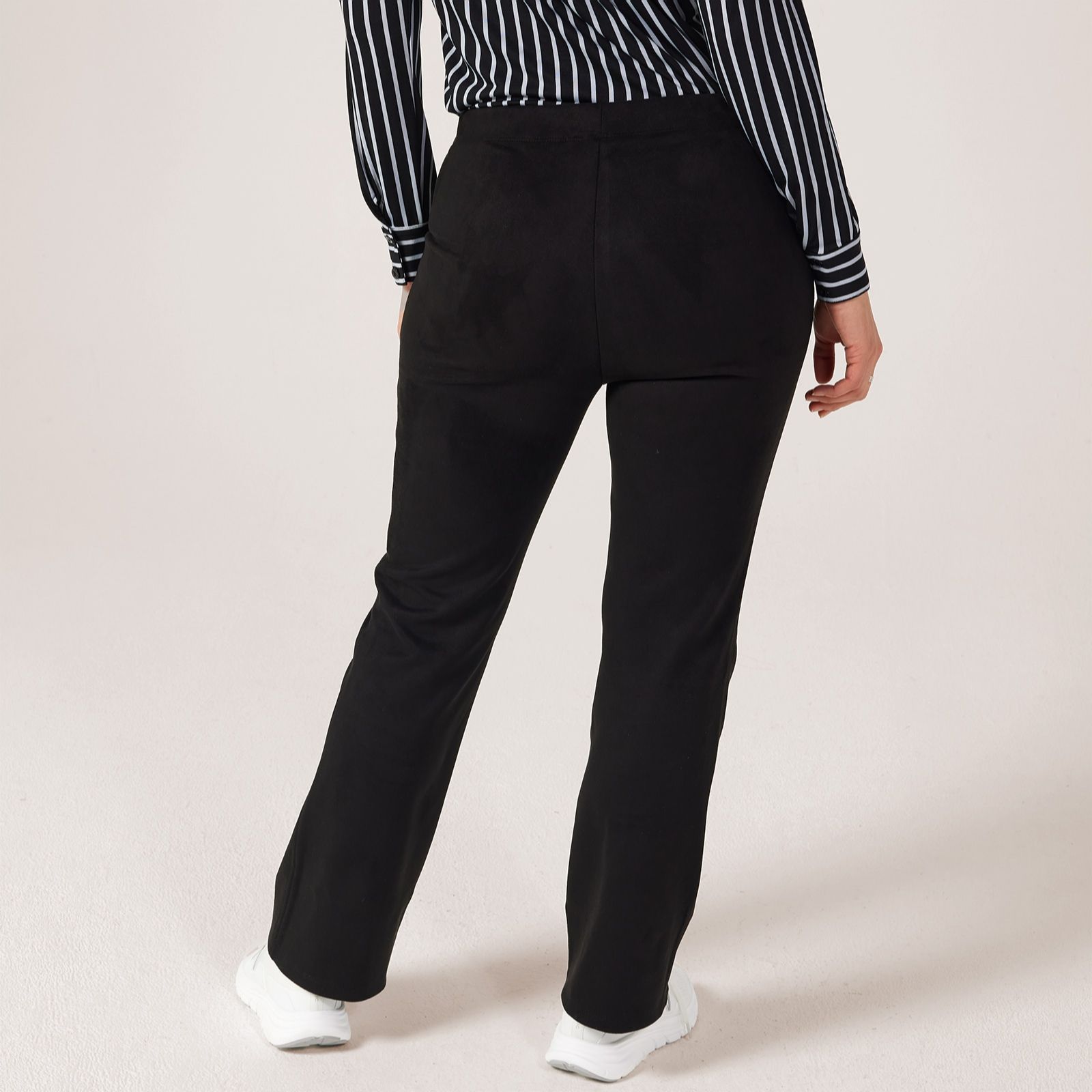 Step up your style game with the Kim & Co Stretch Faux Suede Elasticated Waist Ella flared trousers in a standard fit. These trousers offer a luxurious faux suede feel and a retro flared leg, combined with an elasticated waistband for ultimate comfort. Perfect for both casual outings and more polished affairs, these trousers can easily be dressed up or down. Pair them with a sleek blouse and heels for a chic evening look or with a cosy jumper and boots for a laid-back day ensemble.