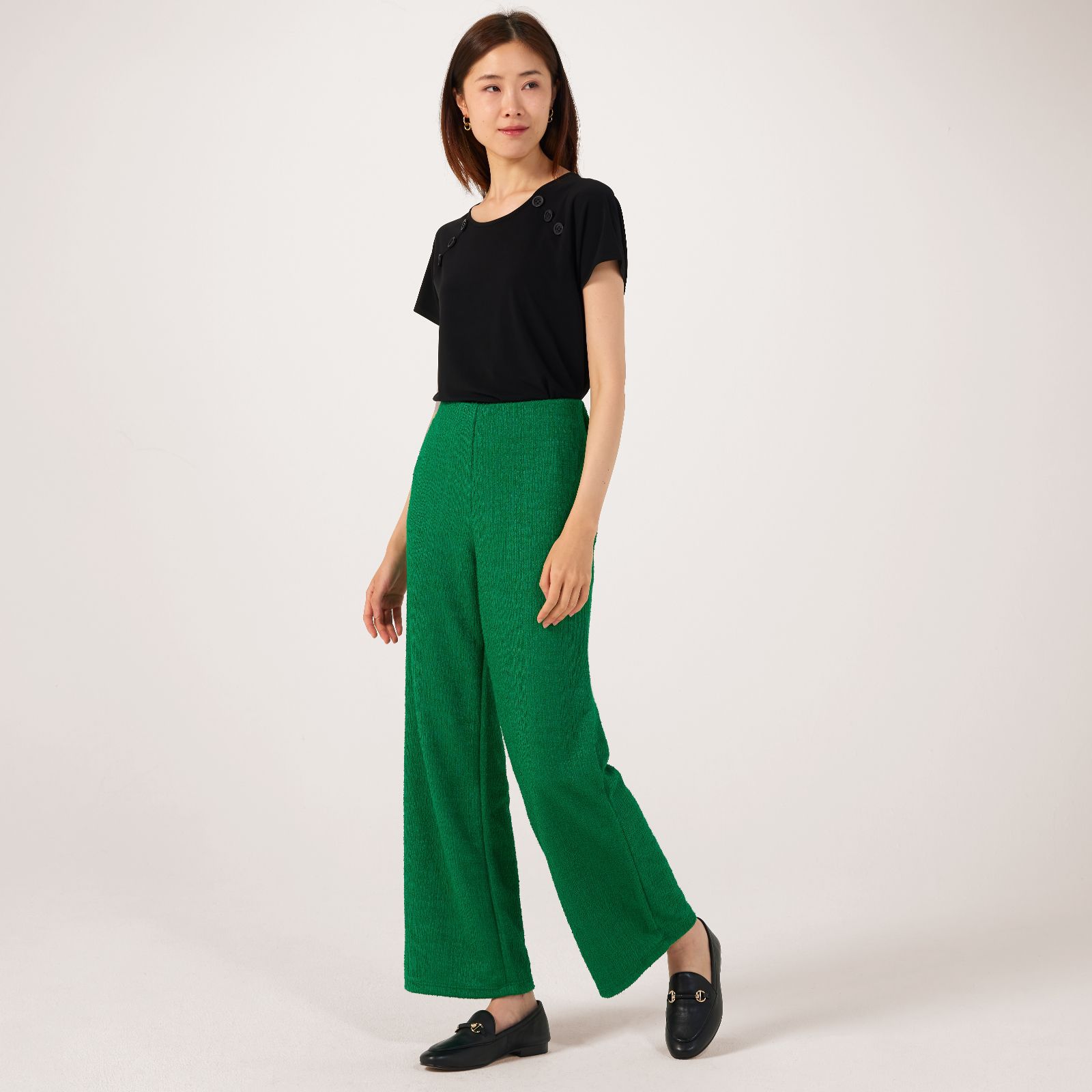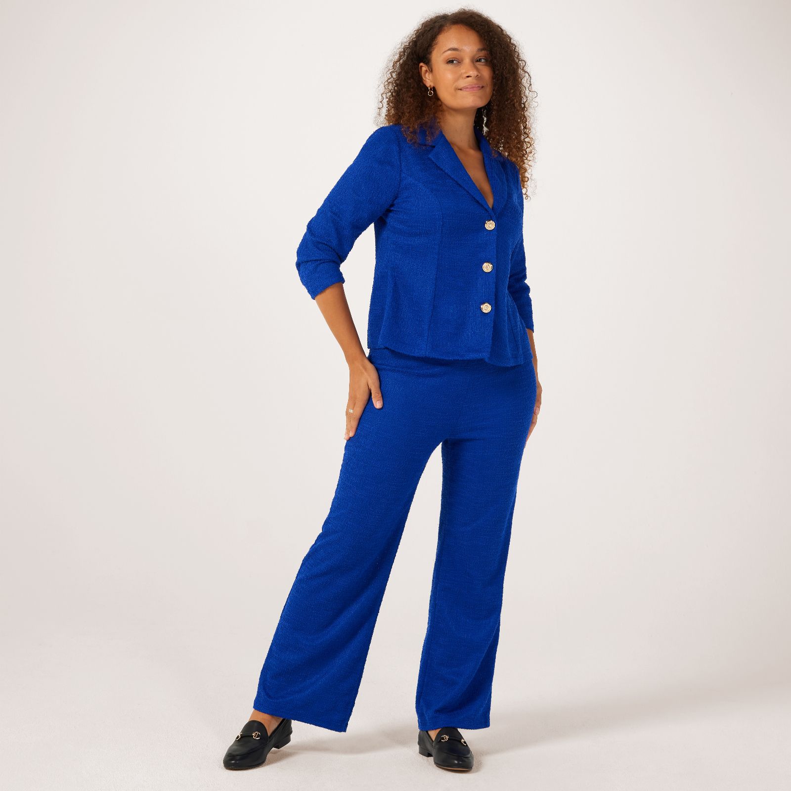 Step into comfort and style with the textured boucle wide leg trousers from Kim & Co in a petite fit. These trousers feature a hidden elastic waistband that ensures a perfect fit, while the luxurious textured boucle fabric adds a touch of sophistication to your ensemble. Whether you're heading to the office or enjoying a casual day out, these trousers are versatile enough to suit any occasion. Pair them with a crisp blouse for a polished look or a cosy jumper for a relaxed weekend vibe.