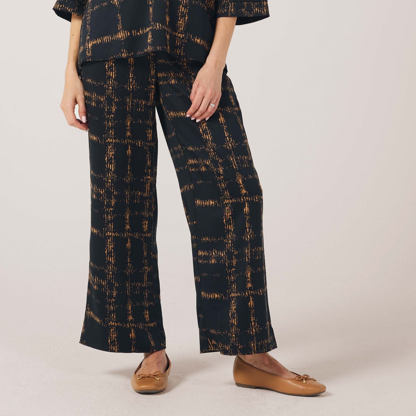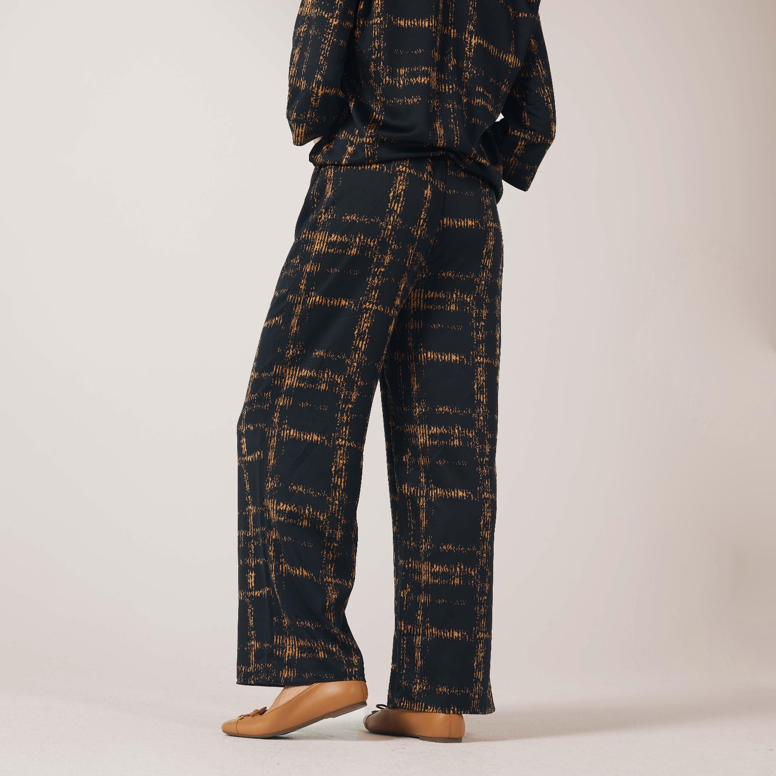 Bring a touch of elegance and comfort to your wardrobe with these luxurious Palazzo trousers from Kim & Co. Crafted in textured satin, these trousers boast a wide leg design that flatters every figure, complemented by a practical 1" elastic waist for an effortlessly comfortable fit. Perfect for a variety of occasions, from a day at the office to an evening out with friends, their versatility will make them a cherished addition to your clothing collection.