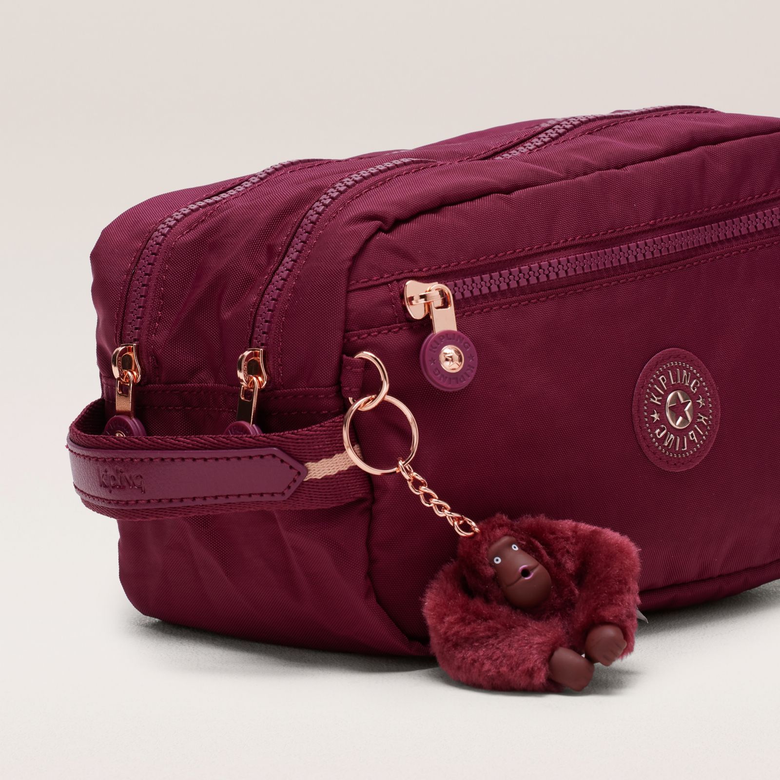 - Sparkling Rose with a shiny rose gold Kipling logo and matching rose gold-coloured hardware; lining colour: Light Pink; monkey name: Lenora