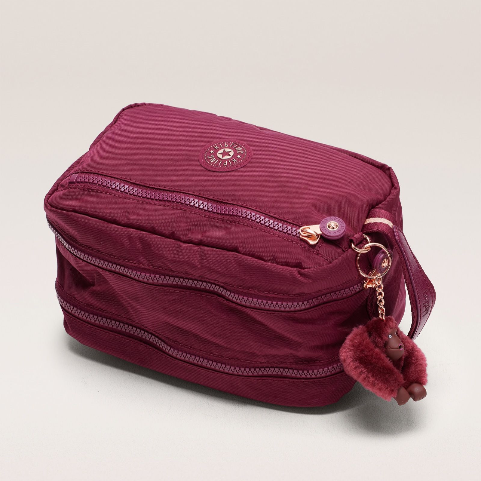 - Sparking Wine with a shiny rose gold Kipling logo and matching rose gold-coloured hardware; lining colour: Light Pink; monkey name: Mijung
