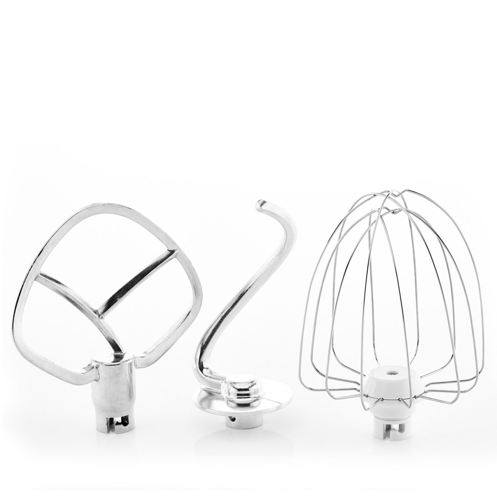 - Includes dough hook, beater, egg whisk and splash cover