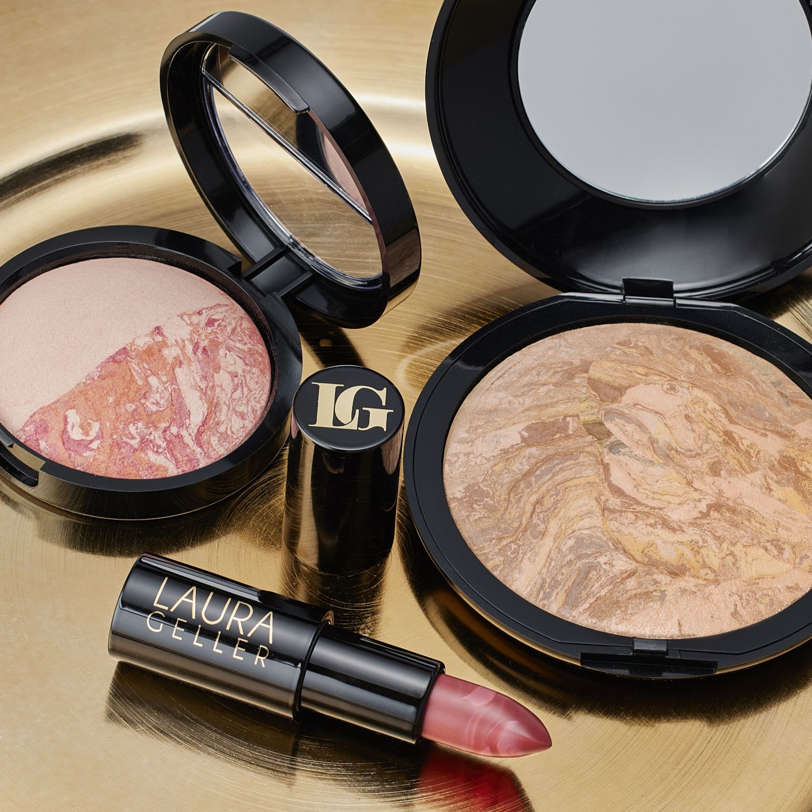 - whether you want to achieve a gorgeously perfected looking complexion, a rosy flush of colour to your cheeks or a golden, natural-looking tan, the baked formulations from Laura Geller will help you achieve it. Using liquid or cream formulas that are then baked on terracotta tiles for 24 hours, before being hand-finished by Italian artisans, each product glides on smoothly, with a soft, creamy application that can be layered for the intensity you prefer.
