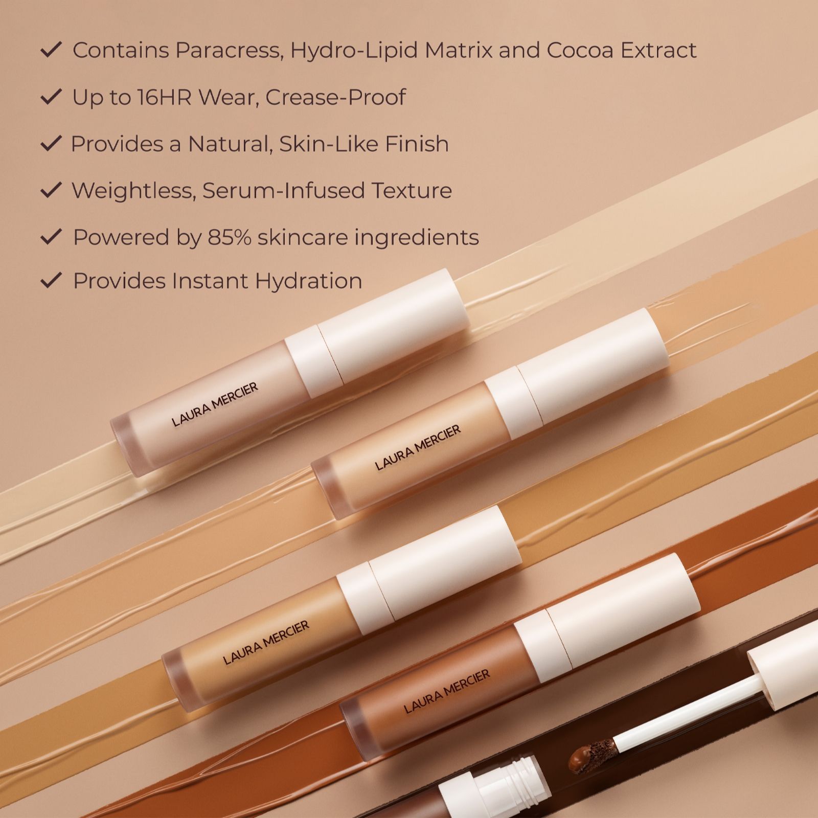 Discover your secret to effortlessly flawless skin with the Real Flawless Concealer Duo from Laura Mercier. This innovative, serum-infused formula helps to instantly brighten, even and smooth your complexion, while providing seamless, buildable coverage that feels weightless and looks undetectable. Ideal for daily use, it helps to minimise the appearance of imperfections and undereye darkness for a perfected finish.