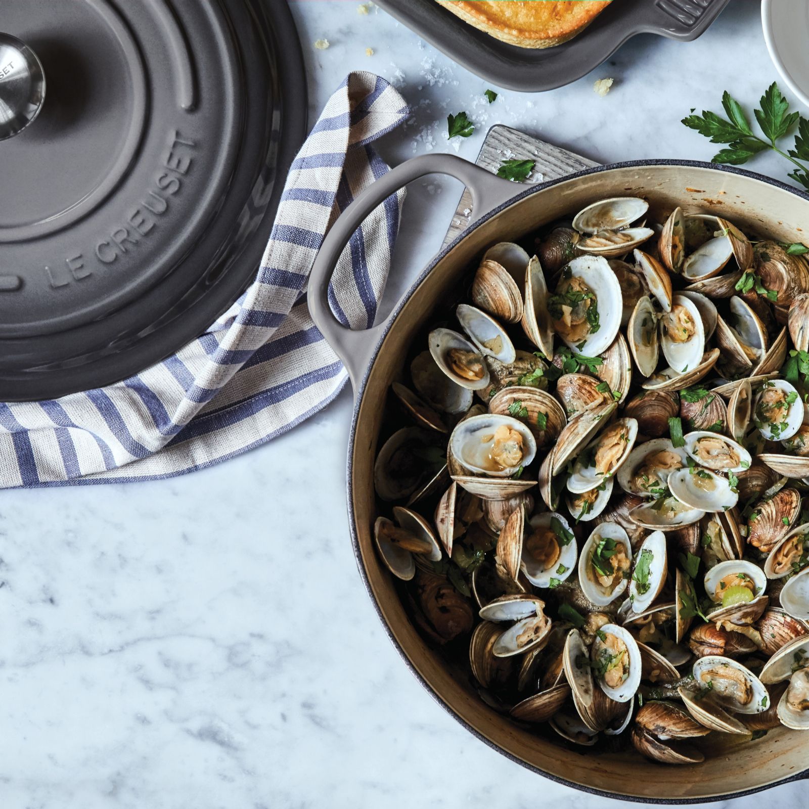 - available in six signature Le Creuset colours, including QVC bestsellers like Flint, Meringue and Bamboo Green. Plus, be first to shop three brand new shades never before seen at QVC: Shell Pink, Chambray Blue and Nectar.