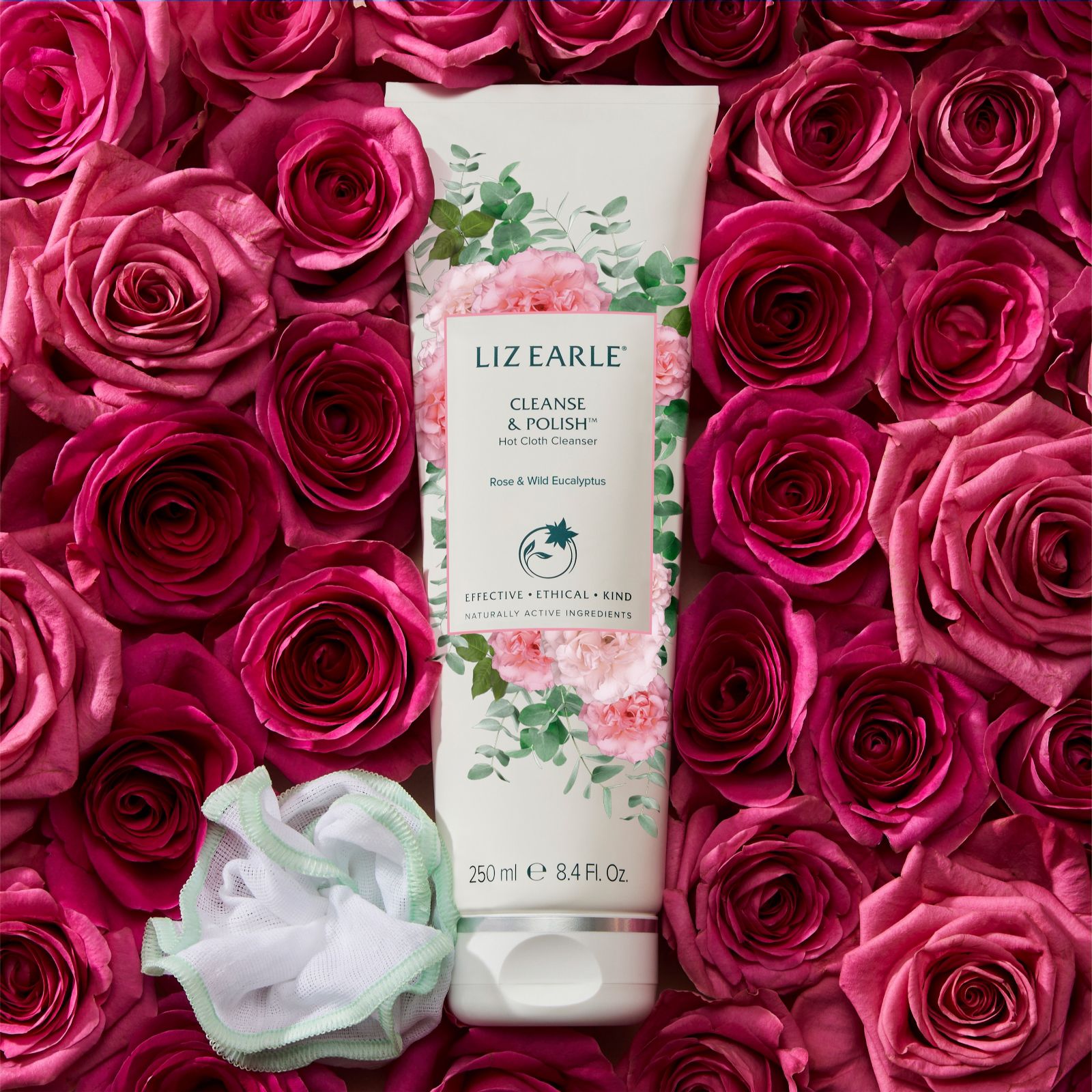 - 1 x Rose & Wild Eucalyptus Cleanse & Polish Hot Cloth Cleanser (250ml; supersize) - this rich, indulgent cream deeply cleanses to instantly remove daily impurities and make-up to leave skin feeling smooth, balanced and exceptionally clean. Used with the pure cotton cloth, it gently exfoliates, lifting away dead skin cells to reveal a glowing complexion. Formulated with rose and eucalyptus. Suitable for all skin types