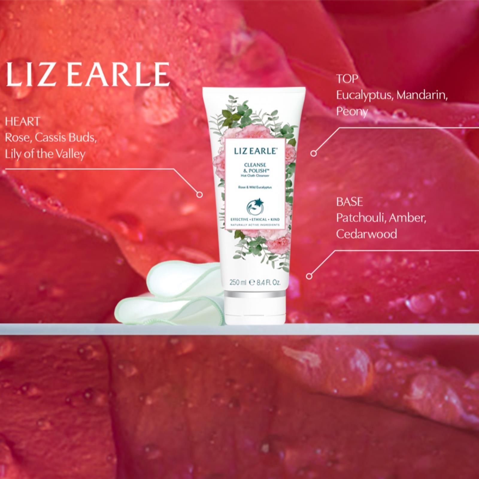 This beautifully scented edition of Liz Earle's iconic Cleanse & Polish Hot Cloth Cleanser is fragranced with Rose & Wild Eucalyptus, and features a creamy formula that works to quickly remove daily impurities and make-up, leaving skin feeling clean, soft and looking radiant. Use this iconic formula as part of your daily routine to gently exfoliate and reveal a glowing complexion that feels comforted and cleansed.