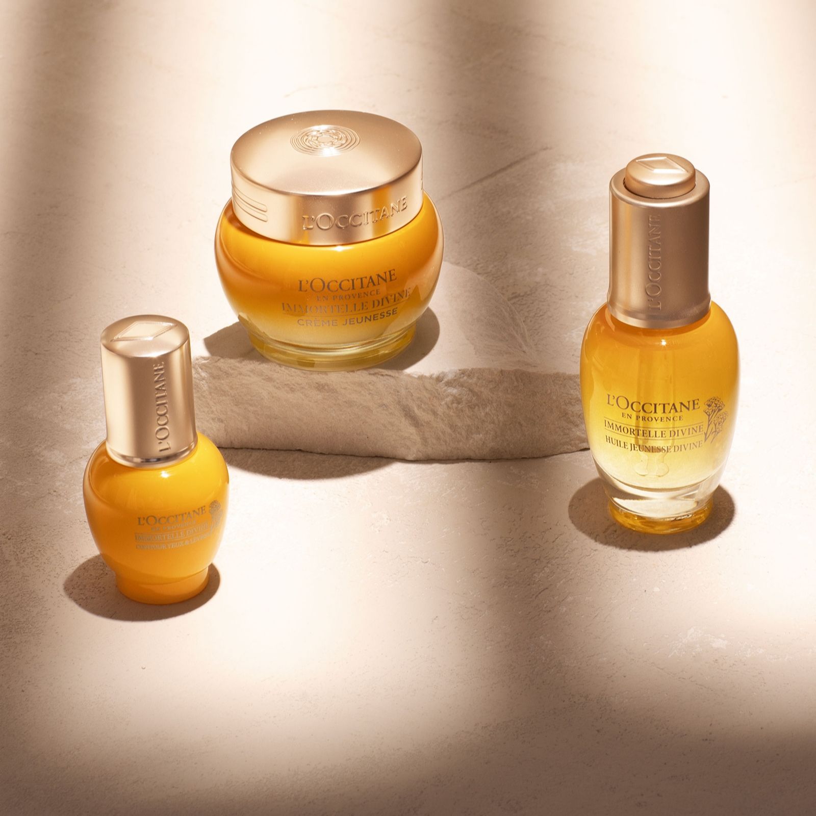 - choose between the Immortelle Divine Serum, a lightweight gel-serum or the multi-tasking Immortelle Divine Youth Oil, both working hard to tackle signs of ageing.
