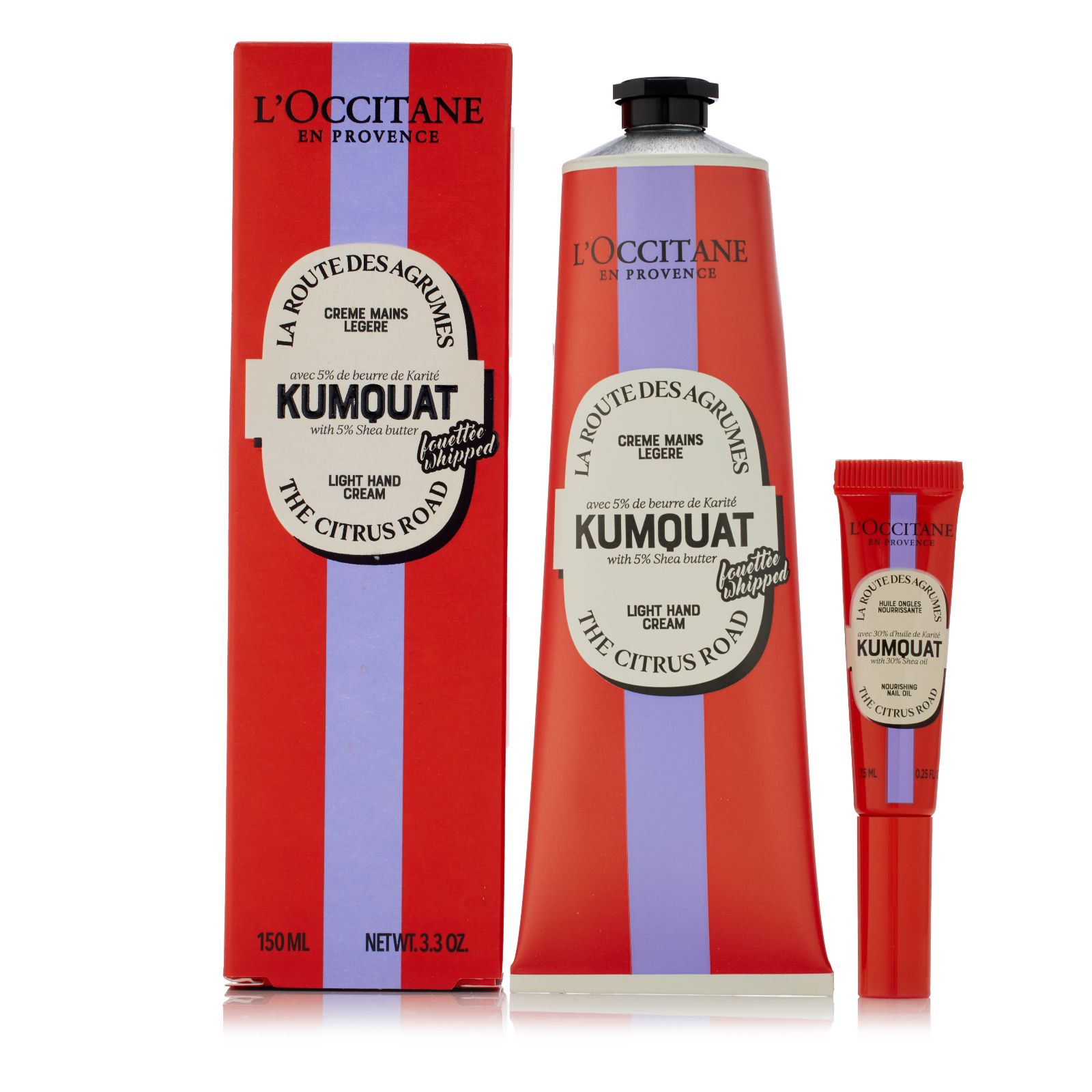 Indulge your hands and nails with the luxurious four-piece Hand and Nail Collection from L'Occitane. Featuring two beautifully scented kumquat formulas alongside L'Occitane's iconic shea butter favourites, this set is perfect for keeping your hands feeling pampered and your nails looking their best, whether you're at home, at work or on the go.