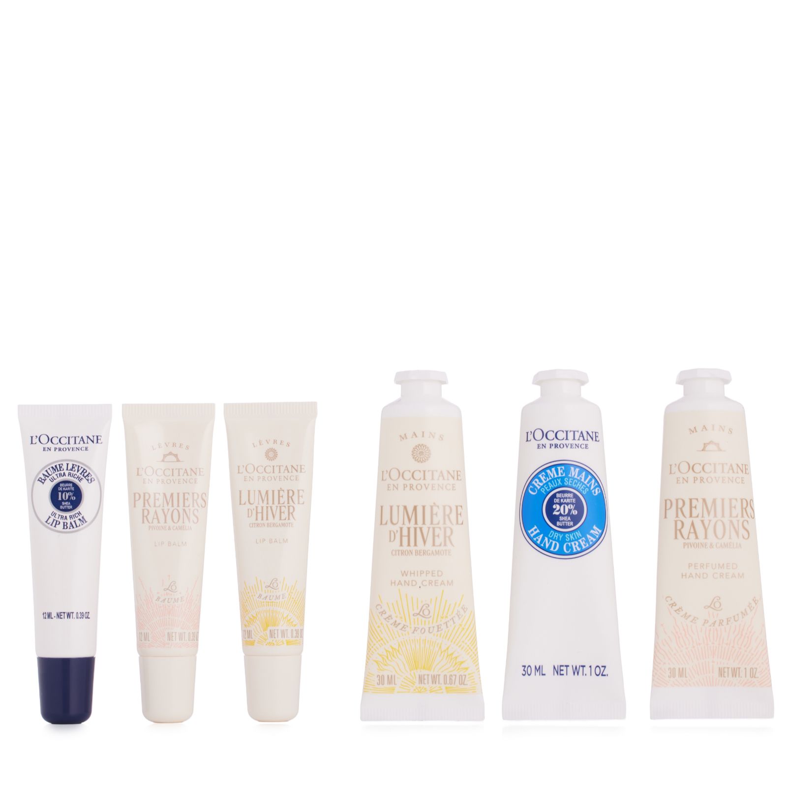 Treat your hands and lips to a comforting ritual with the L'Occitane six-piece Hugs and Kisses Collection, featuring three hand creams and three lip balms in a selection of inviting scents. This delightful set is perfect for keeping at your desk, in your bag or beside your bed, so you can help keep your skin feeling soft and cared for throughout the day.