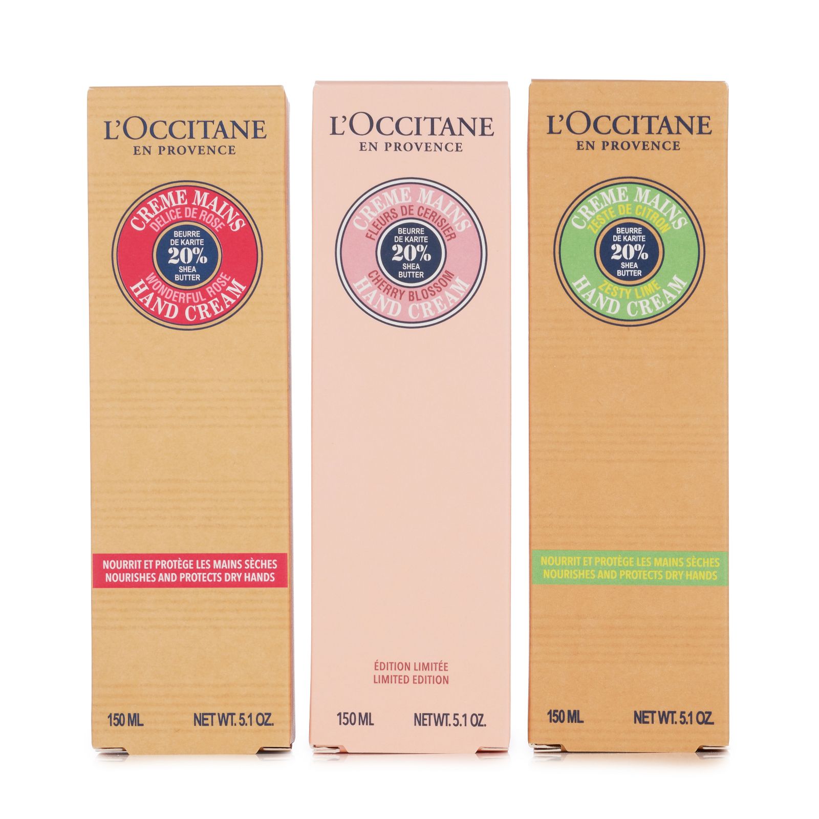Take in the delightful scents and luxurious textures of the Fresh and Floral Hand Cream Trio from L'Occitane. Featuring Shea Lime, Wonderful Rose and Cherry Blossom Shea scents, each cream helps to leave your hands feeling soft and beautifully fragranced. Perfect for keeping in your handbag, on your desk or by the sink, this set offers a touch of indulgence whenever your hands need a little pampering.