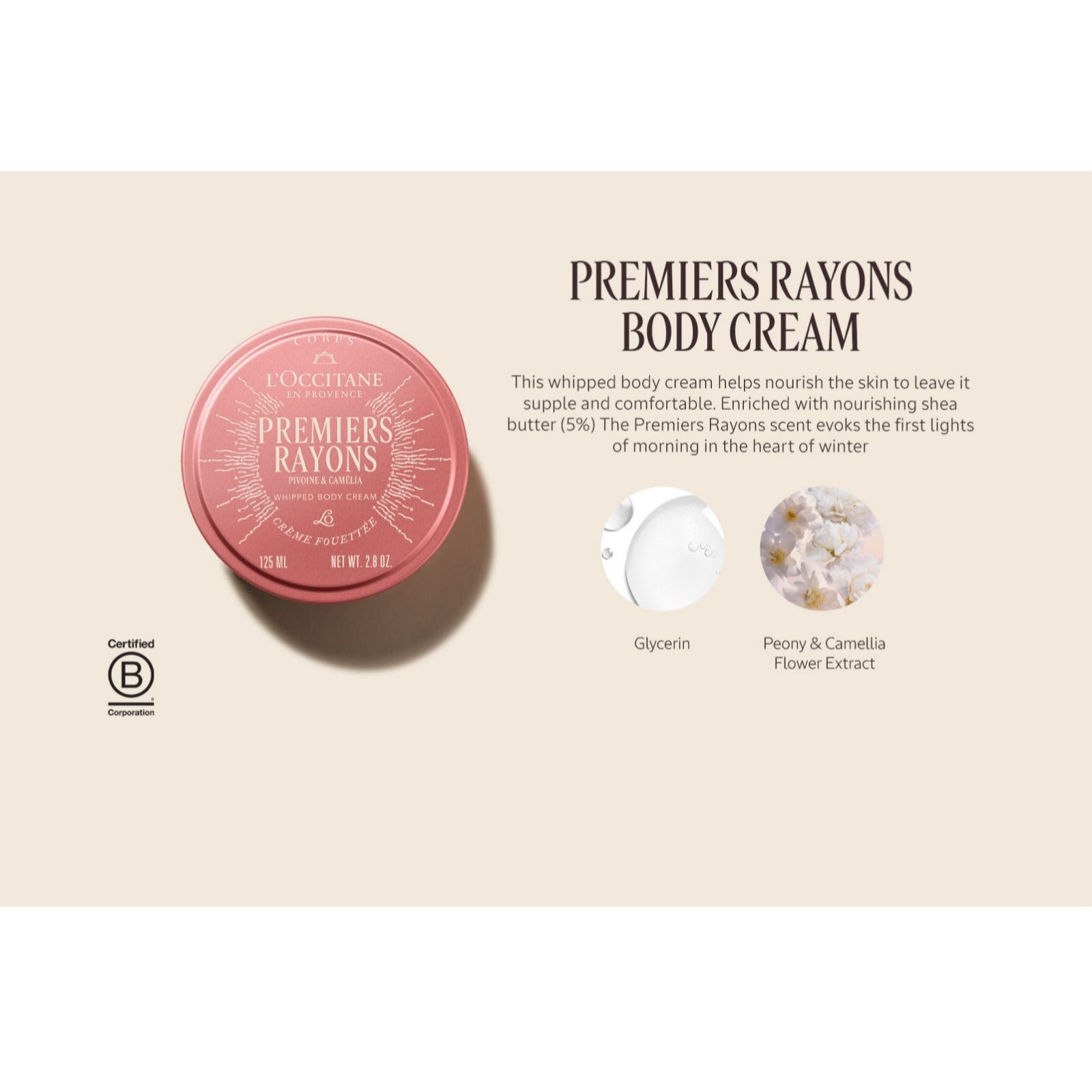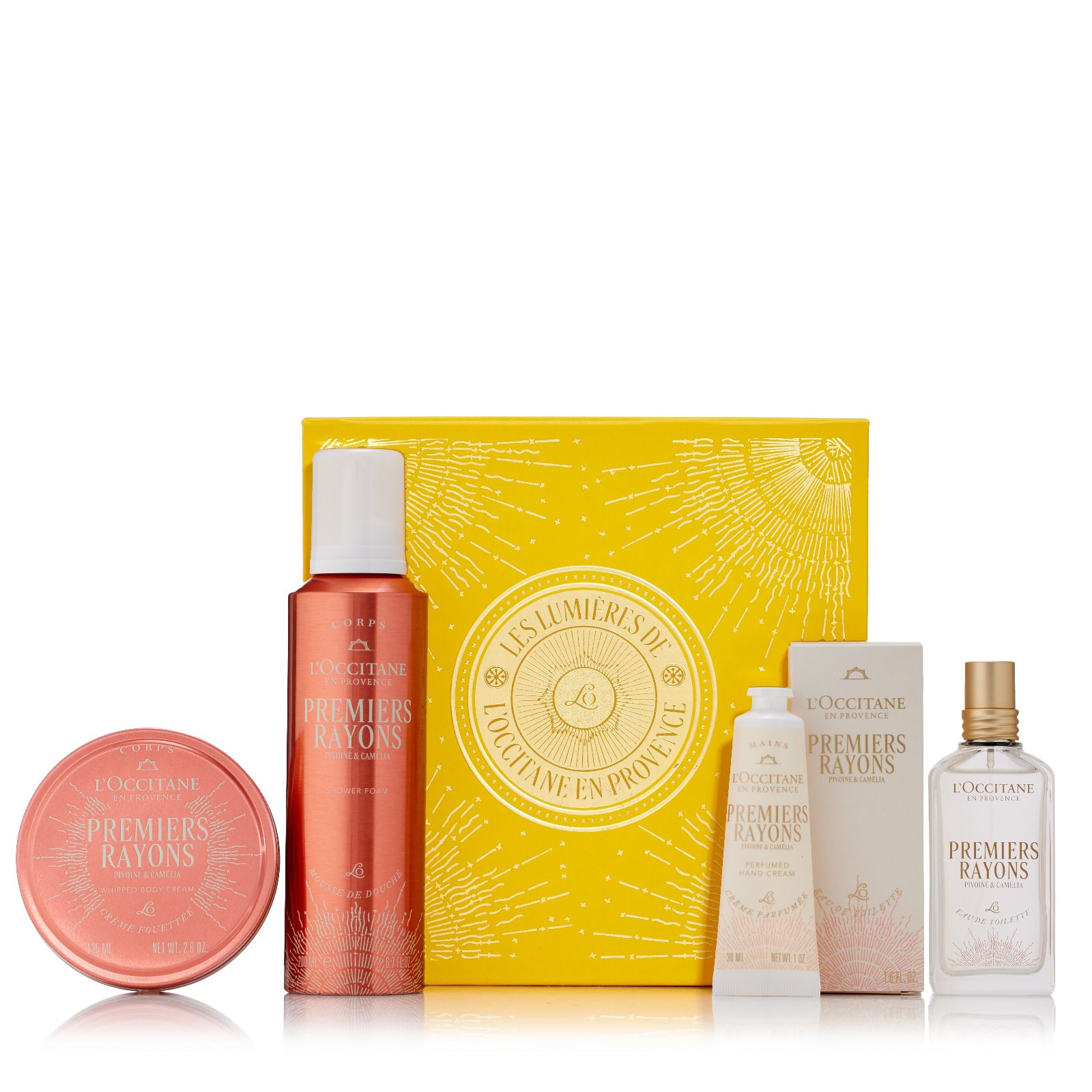 Evoke the freshness of morning dew in the heart of winter with L'Occitane's Premiers Rayons Fragrance Collection, exclusive to QVC in the UK. Inspired by bright, crisp mornings in Provence, this floral-musky scent blends peony, camellia and pear for a delicate yet uplifting aroma. Perfect for adding a touch of elegance to your daily routine or gifting to someone special, this set boasts a range of bath and body goodies in addition to the star of the show, the gorgeous Premiers Rayons fragrance.