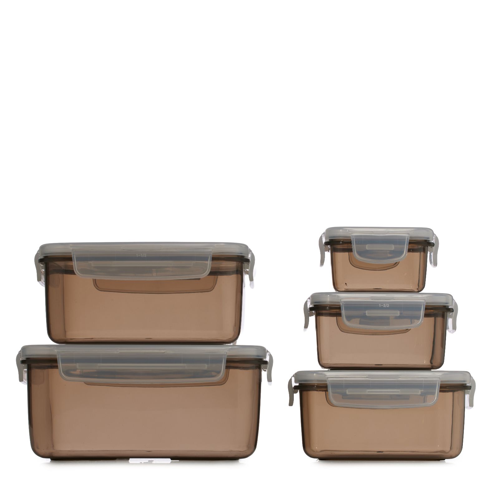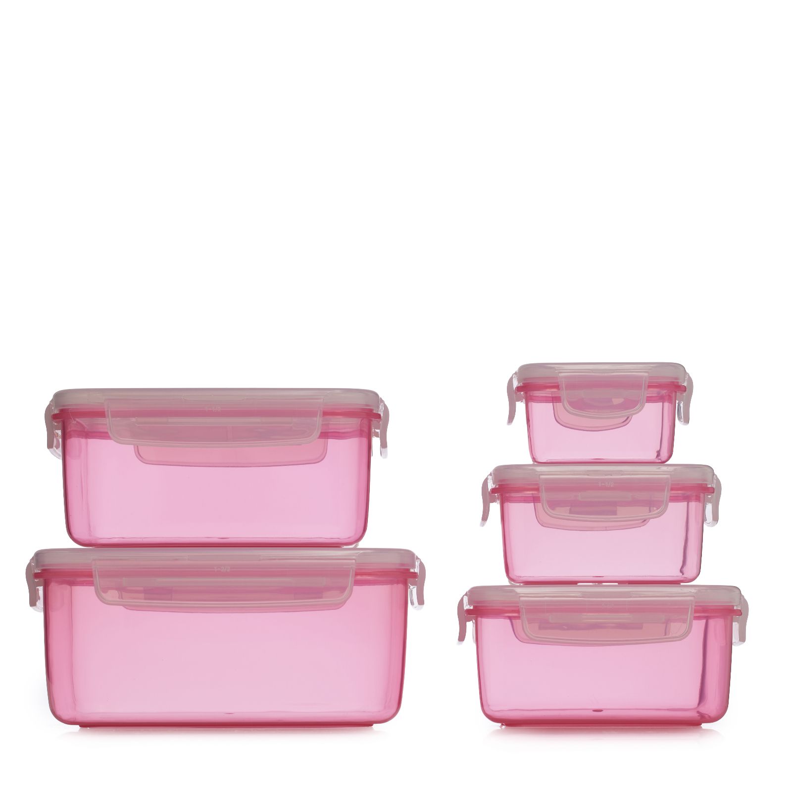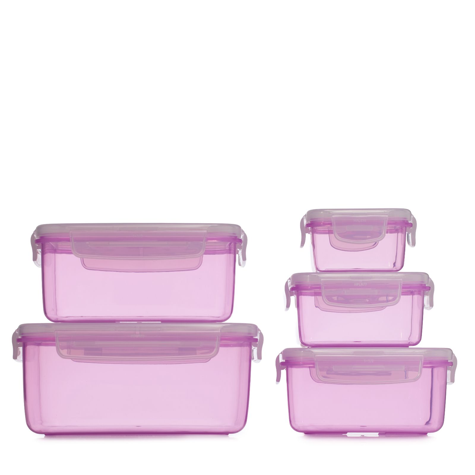 Stack up the freshness and organise your kitchen with this set of five nestable food containers from Lock & Lock. Designed with a four-sided locking system for exceptional water and airtightness, these BPA-free containers are great for storing your leftovers, prepping meals or taking lunch on the go. When youre not using them, theyll nest inside one another to save space, perfect for busy households.