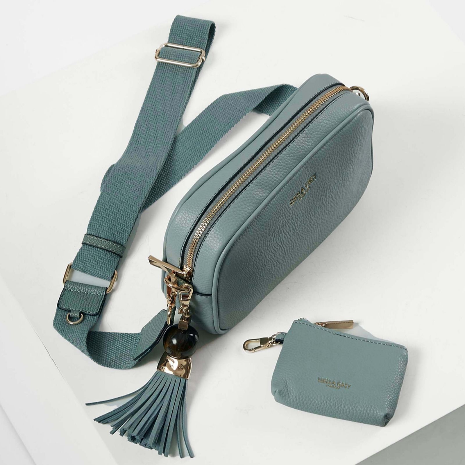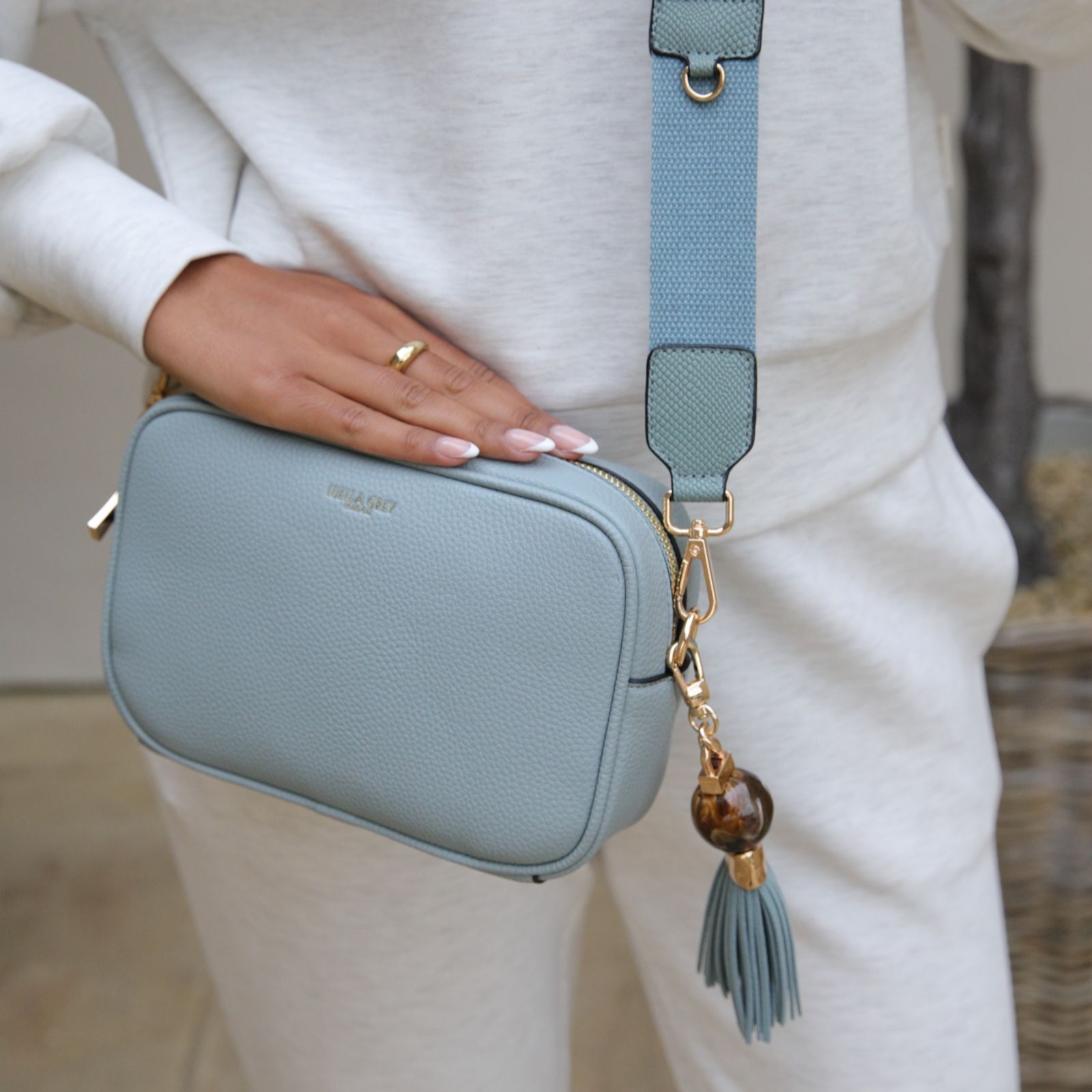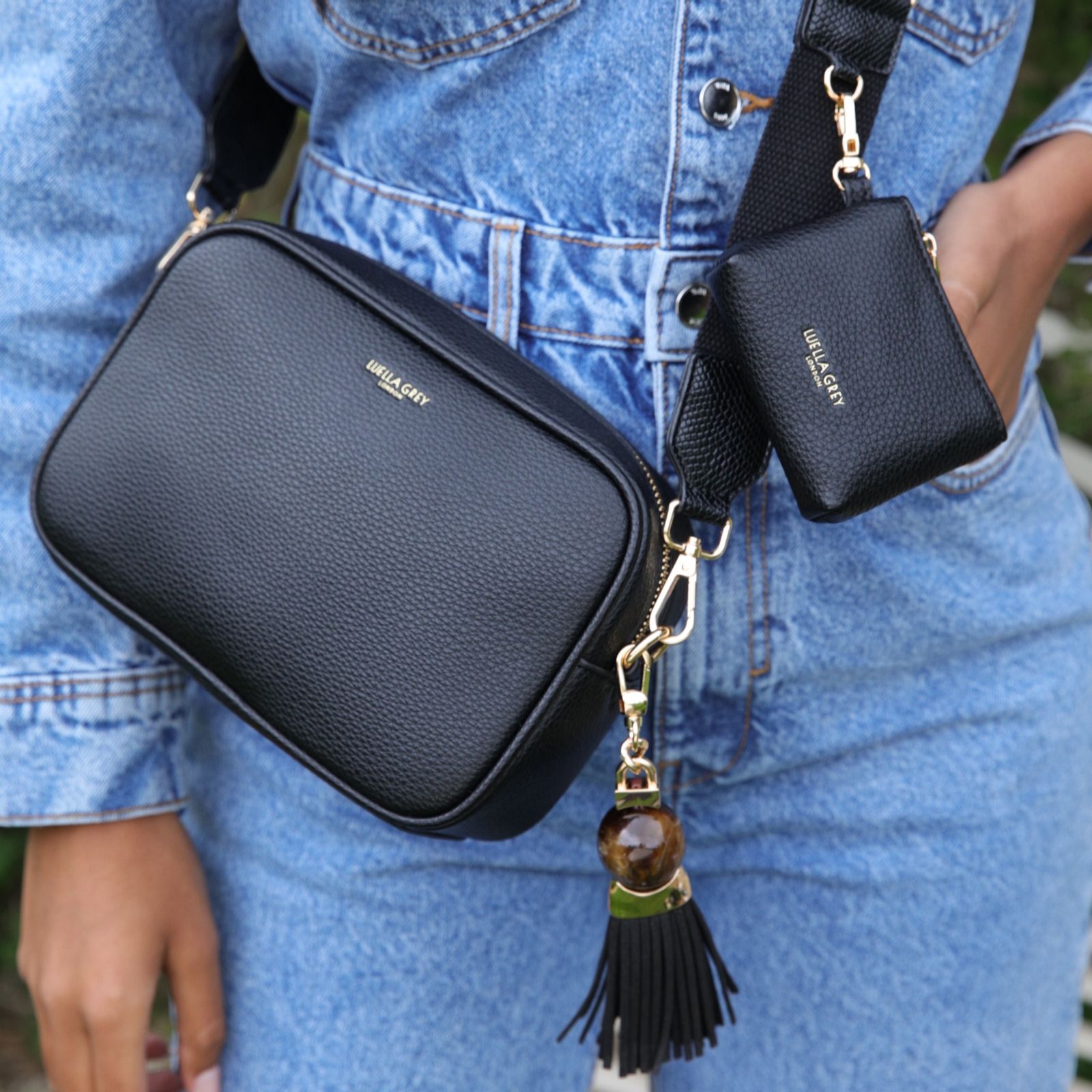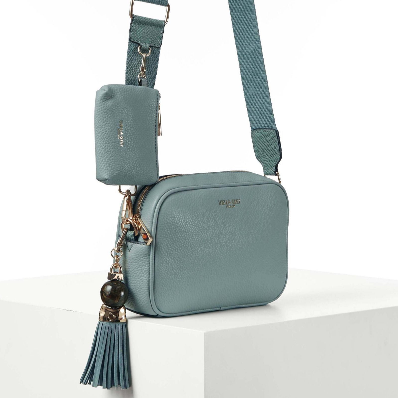 The Luella Grey Betty camera bag brings a stylish twist to your weekend wardrobe with its signature Thames Tassel charm and versatile design. Made from soft, grainy faux leather, this crossbody bag is both chic and practical. The canvas strap features the Edna zip-top purse charm, which can be detached and used to keep your essentials secure and close at hand. Perfect for a casual day out or a night on the town, Betty combines fashion and function effortlessly.
