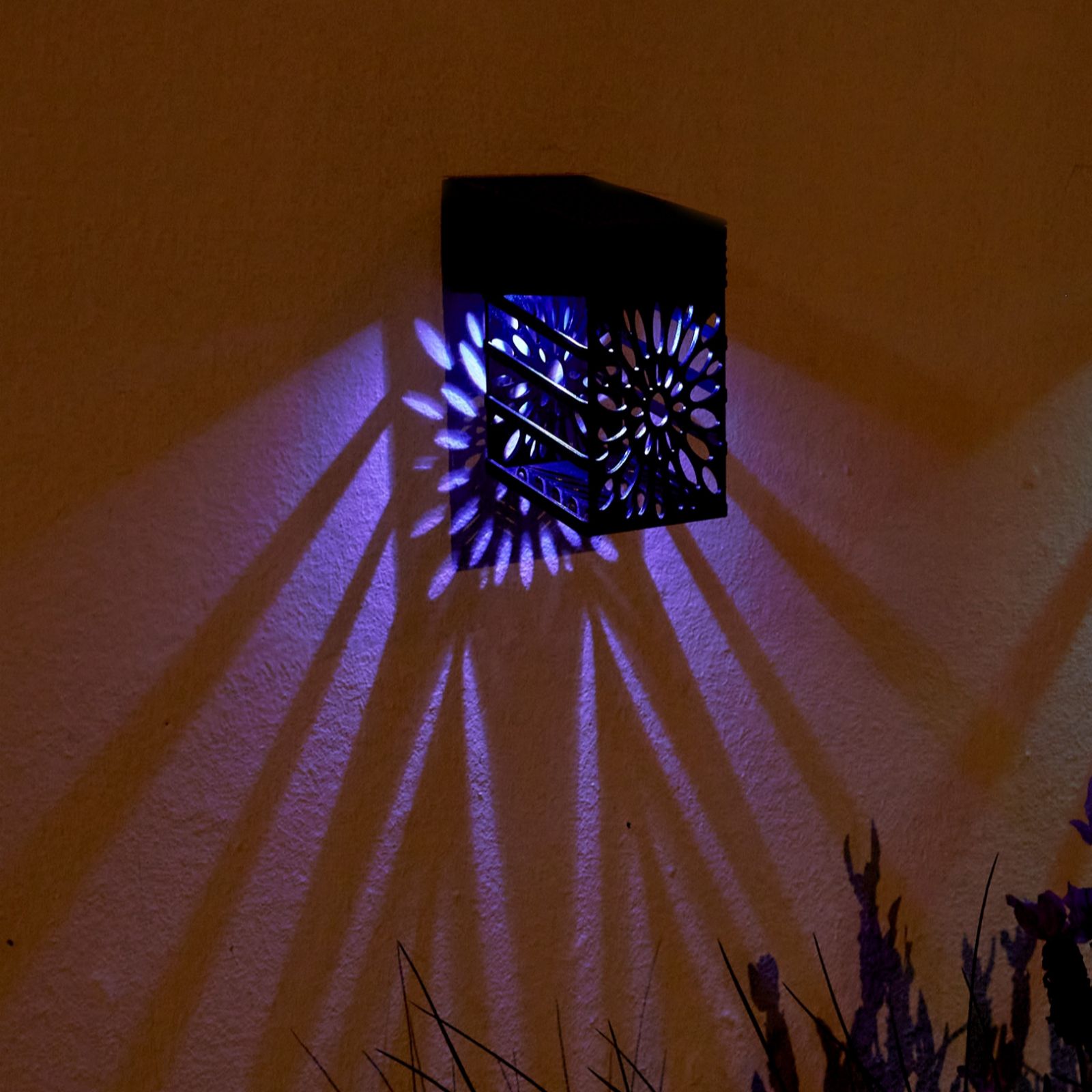 Enjoy your garden from dusk until dawn with this set of four solar cut out lights from Luxform. These enchanting lights feature a fretwork design that casts a stunning sun-like light and shadow pattern across your space. Perfect for marking pathways or adding a welcoming glow to your entrance, choose between a warm light for a cozy atmosphere or a vibrant color-changing mode for outdoor celebrations, all while a dusk-to-dawn sensor ensures that your garden's illumination is entirely effortless.