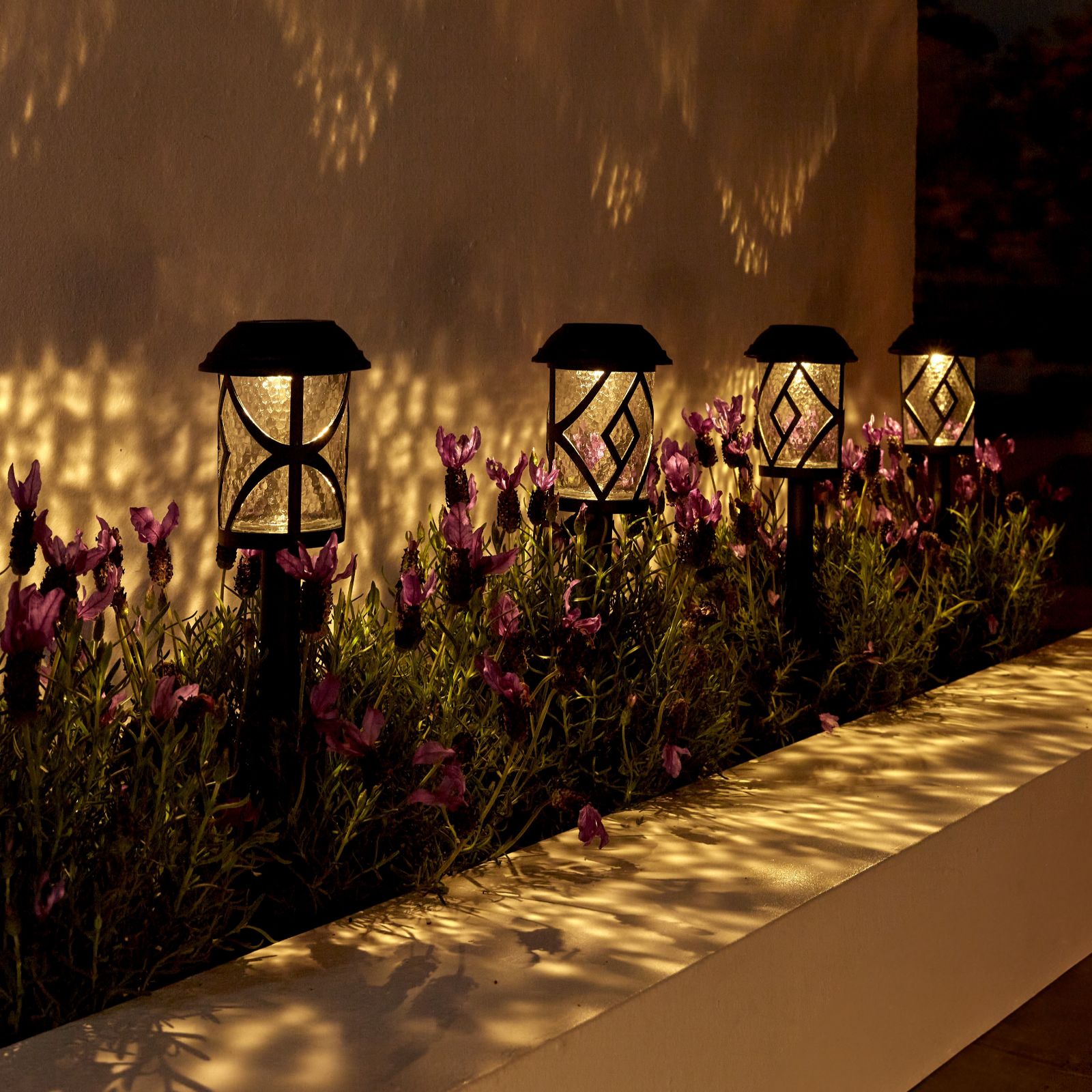 Brighten up your garden with this enchanting set of four solar deco stake lights from Luxform. These elegant garden lights feature real glass lenses and a timeless deco design, perfect for adding a touch of sophistication to any outdoor space. With two light settings, you can choose between a cosy warm white light or a festive, fairylike RGB colour-changing light. These lights are easy to set up and come with all necessary parts, so they're ready to illuminate your garden within minutes.