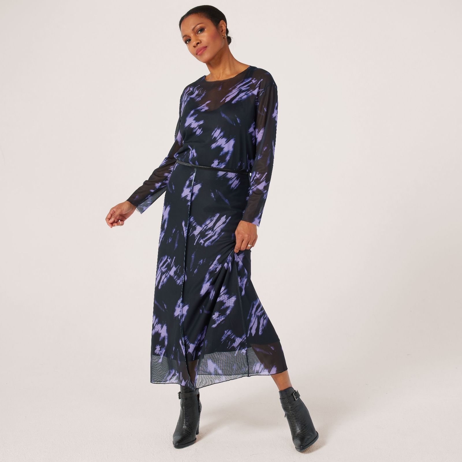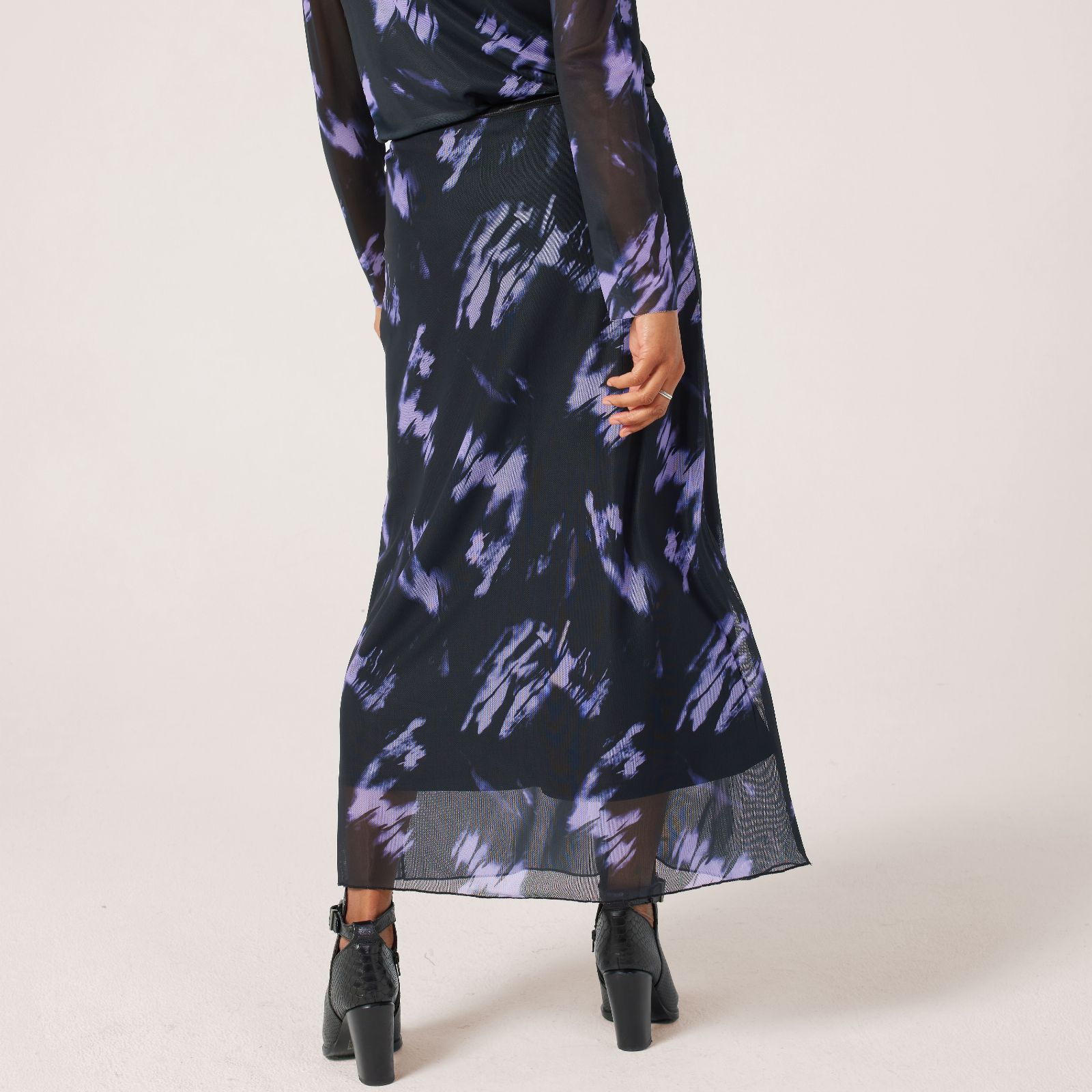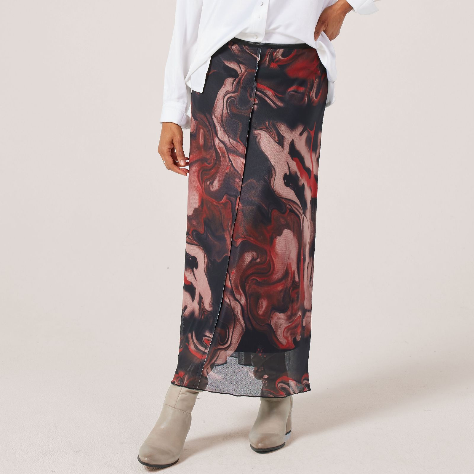 Elevate your wardrobe with this stunning midi skirt from Malissa J. Crafted from a beautiful printed stretch mesh, it features an elasticated waist for comfort and a stylish front seam detail. Perfect for both casual and dressier occasions, this versatile piece will quickly become a favourite. Pair it with a simple blouse and your go-to heels for a chic, effortless look.
