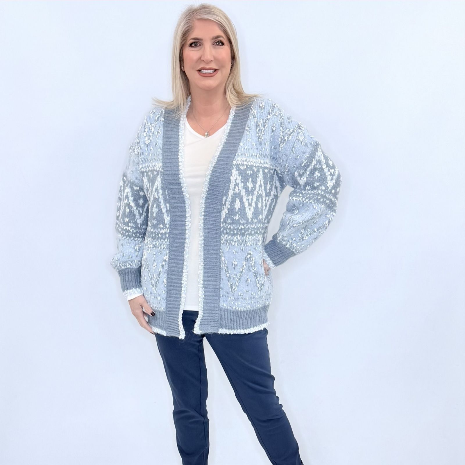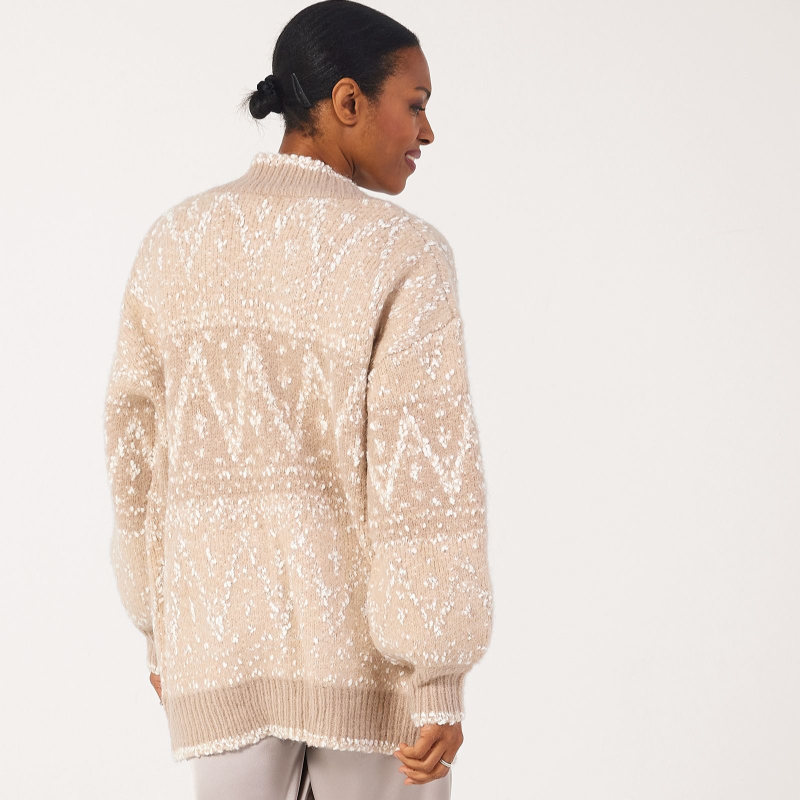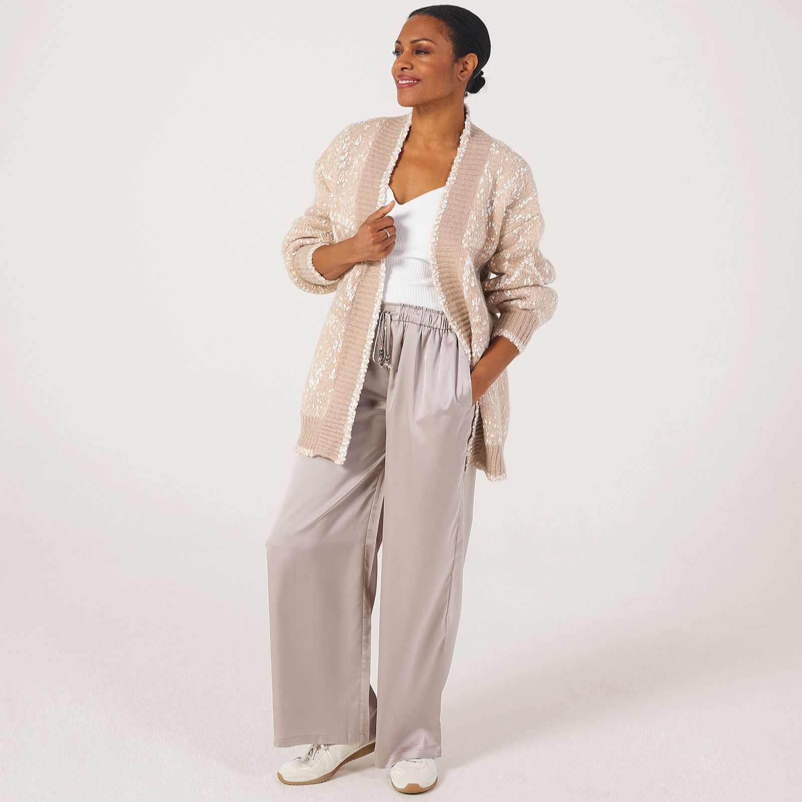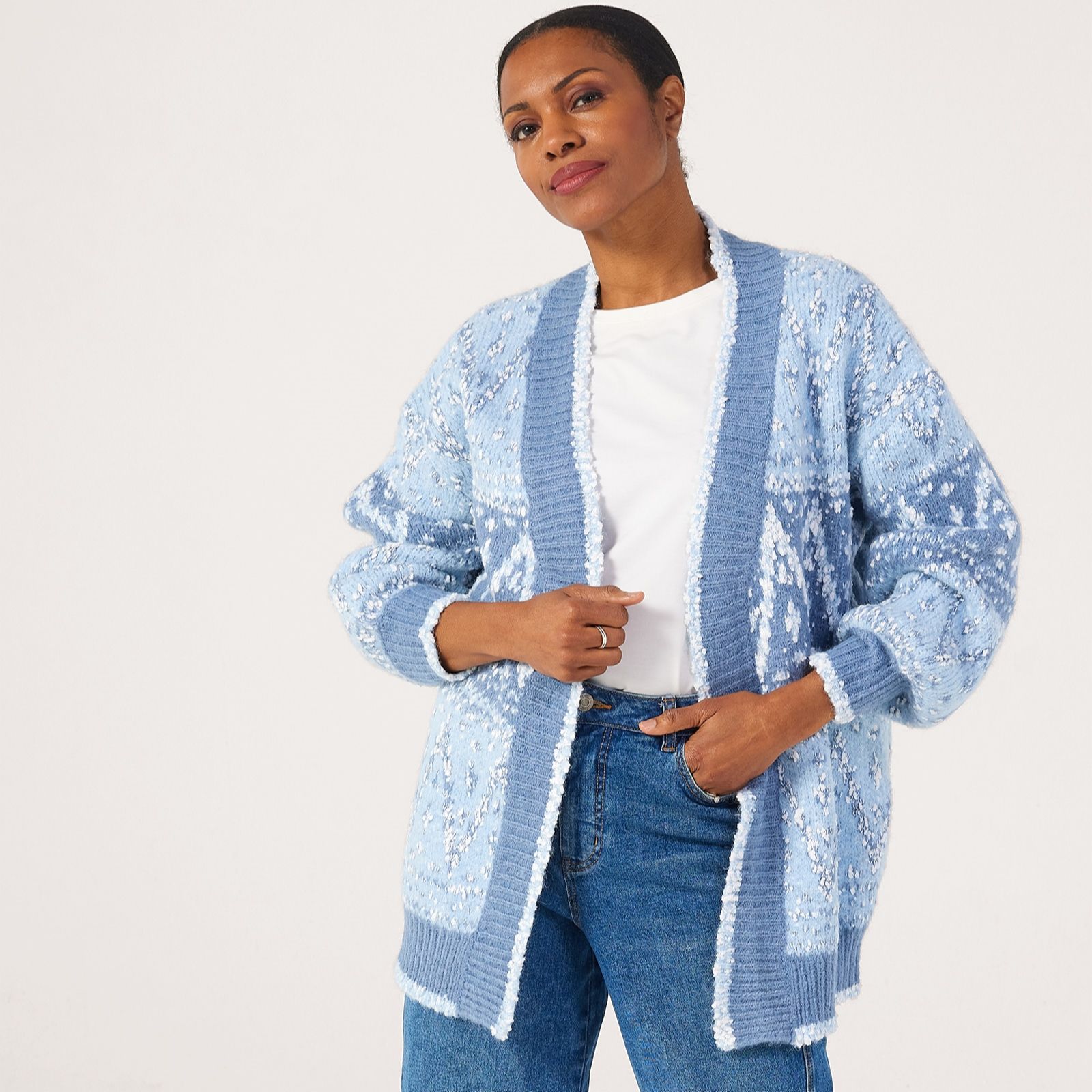 Exude cosy style with the oversized edge-to-edge cardigan from Malissa J, showcasing a tonal multi-coloured patterned knit that feels as chic as it does comfortable. Perfect as a stylish alternative to a jacket, it's ideal for layering over your outfits on cooler days or adding a tone of texture to your evening looks. Try pairing it with some ankle-length trousers for a coordinated ensemble that blends comfort with effortless elegance.
