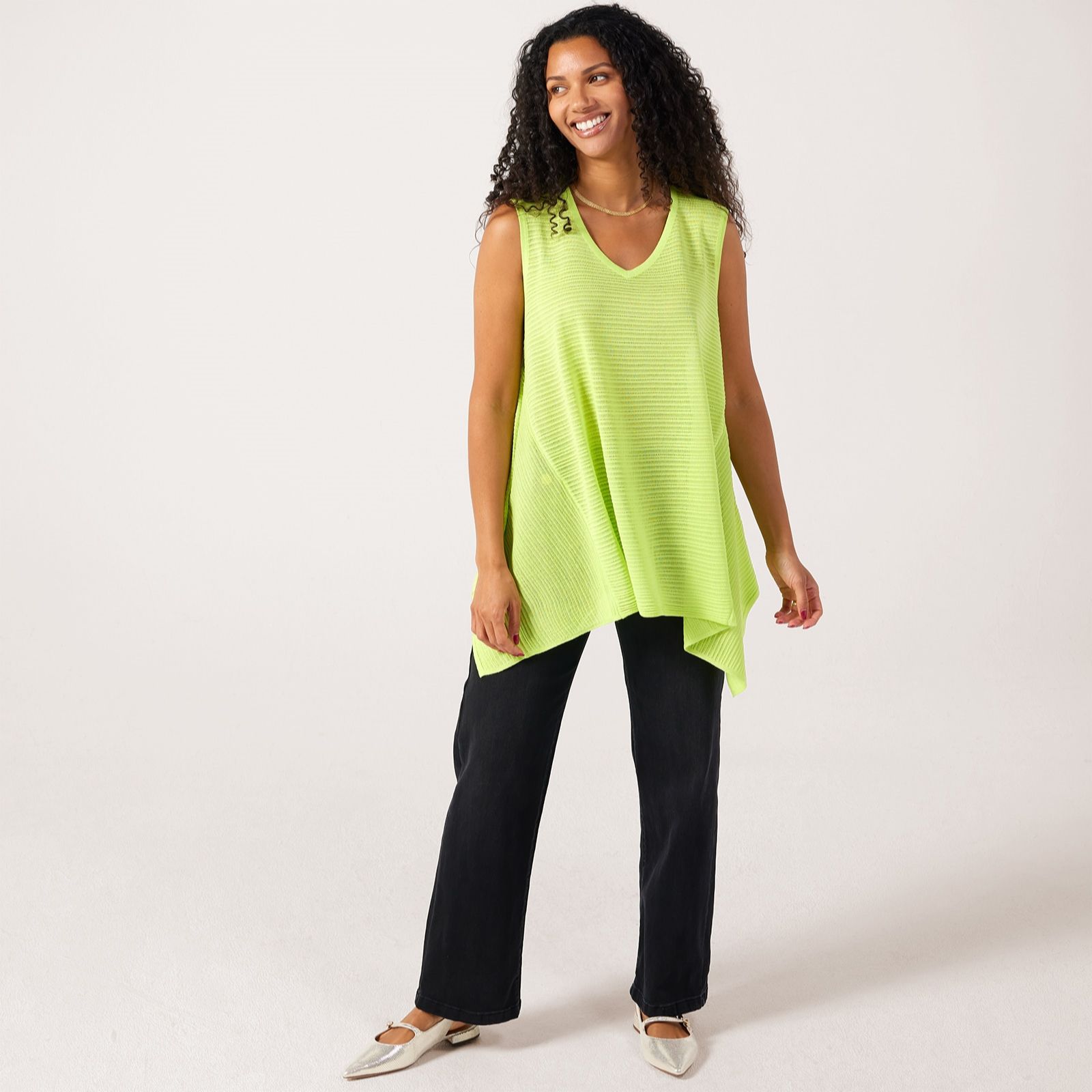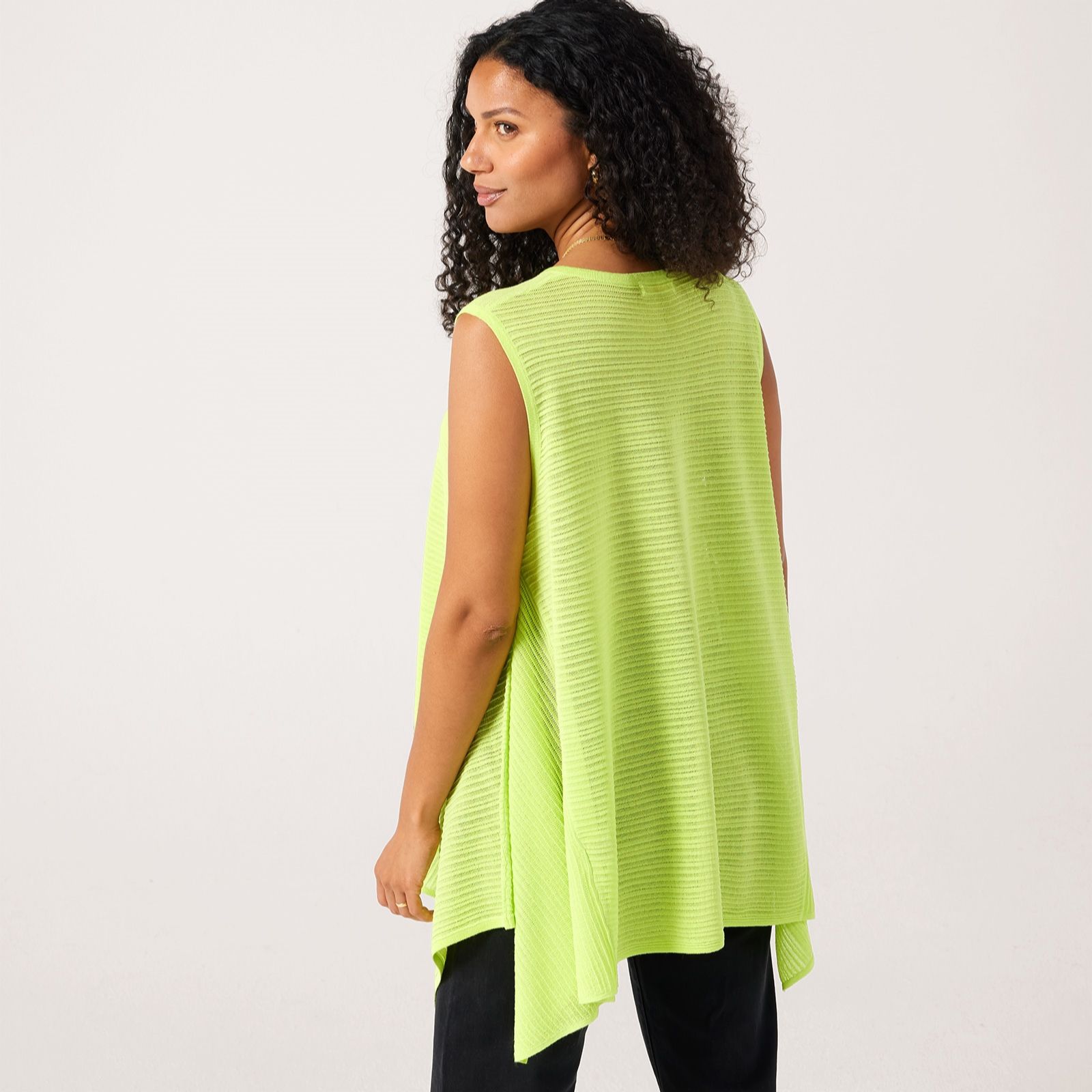 Malissa J Sleeveless Rib Effect Open Knit Top With Shark Hem
