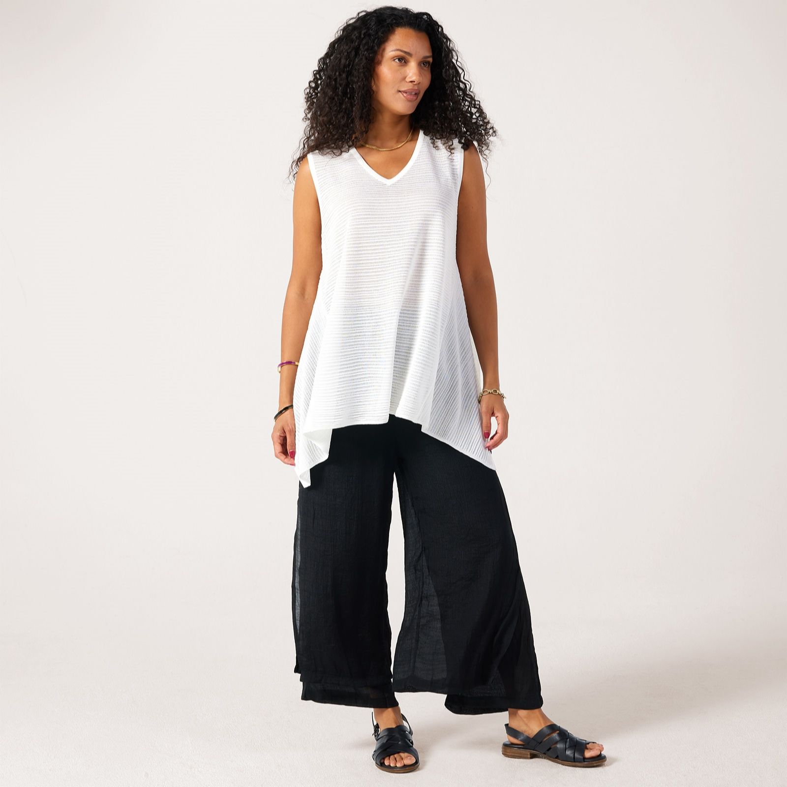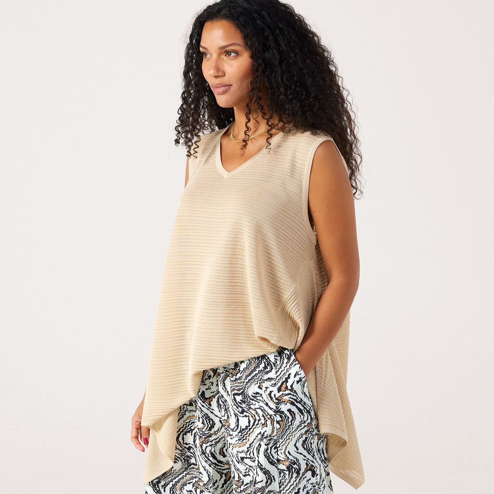 Slip into effortless style with this sleeveless open knit top from Malissa J, designed with a striking rib effect and contemporary shark hem that adds movement and flair to your look. The relaxed fit and dropped sides make this top perfect for layering over camisoles or pairing with slim trousers for casual days out or chic evenings. Try finishing it with statement jewellery and sandals for a modern, laid-back ensemble.