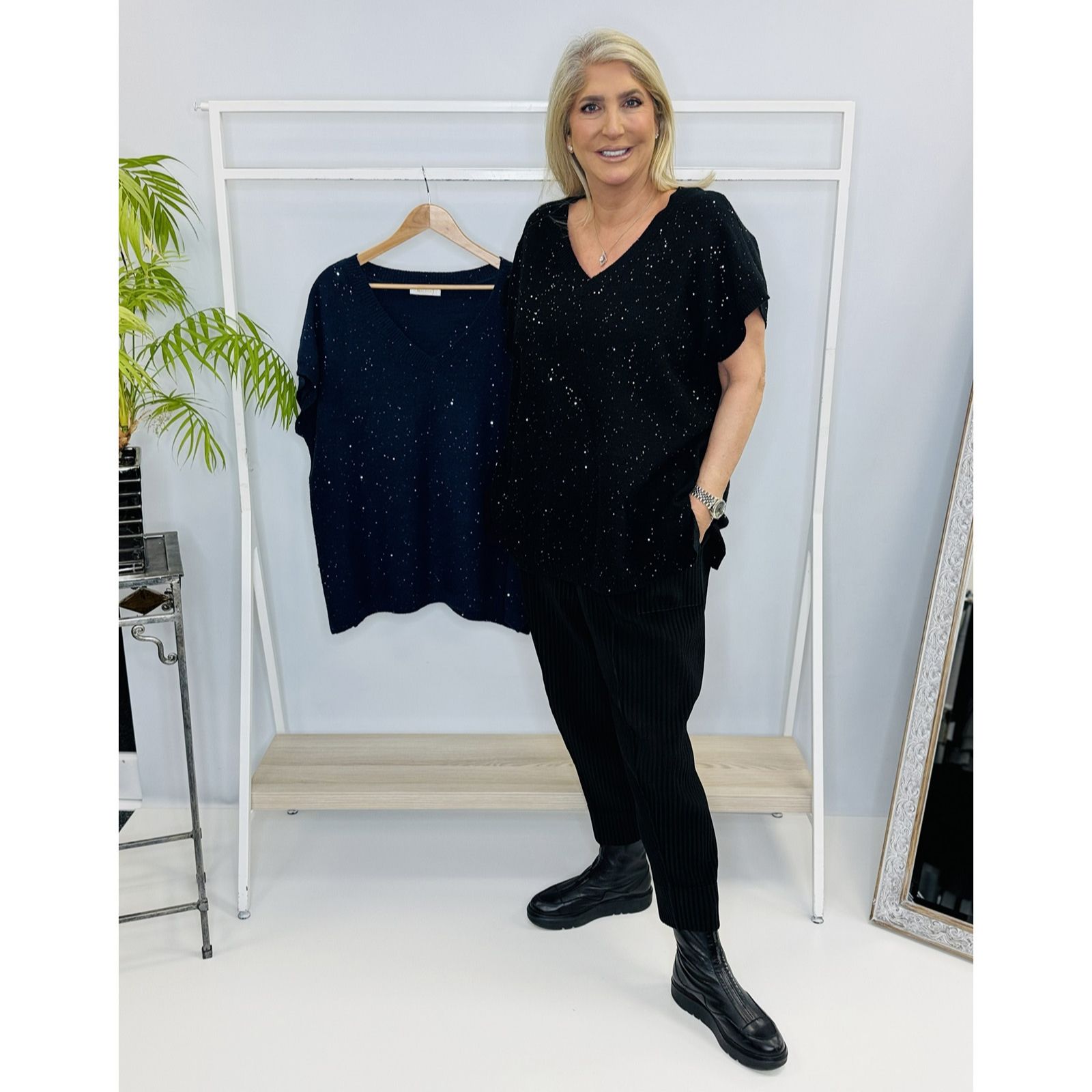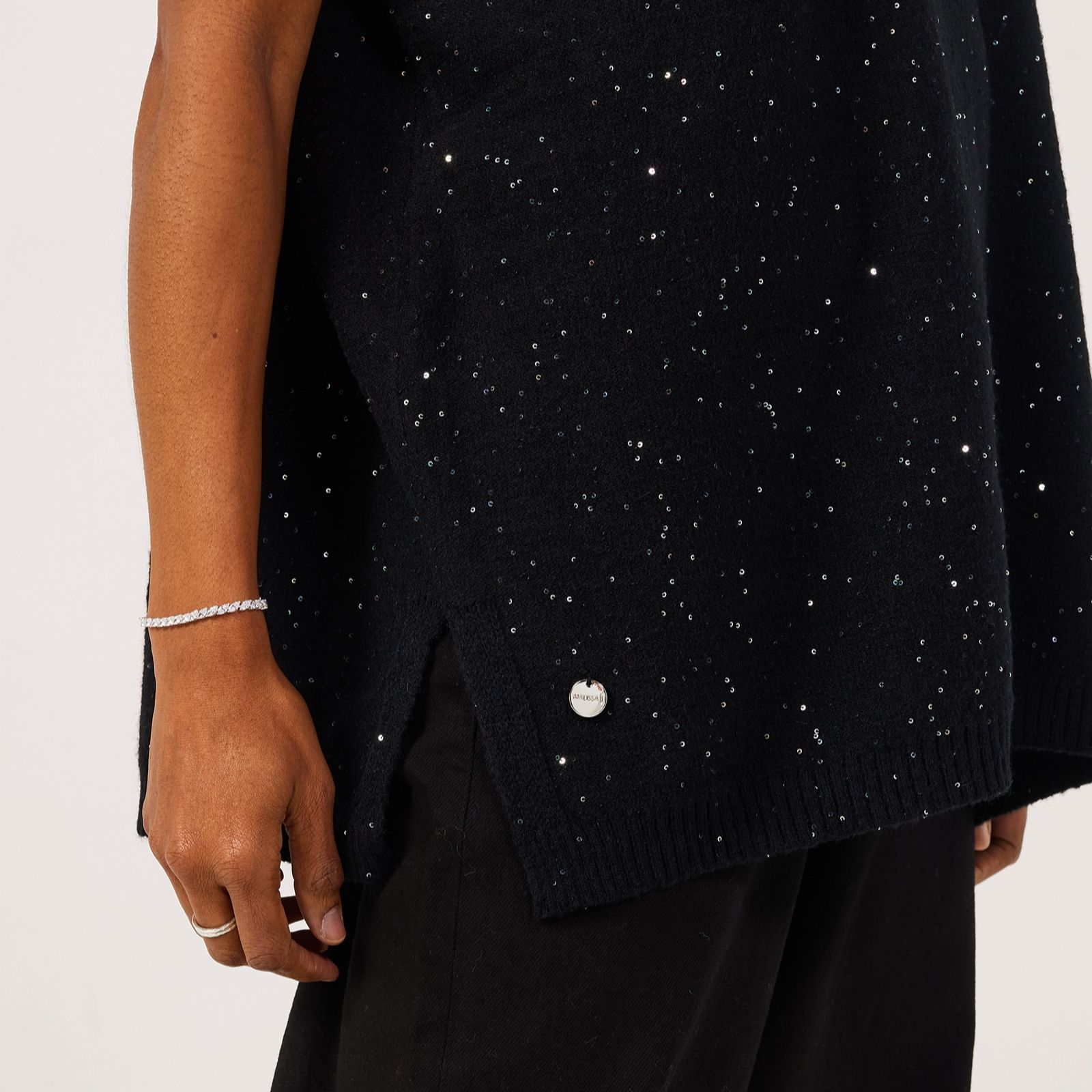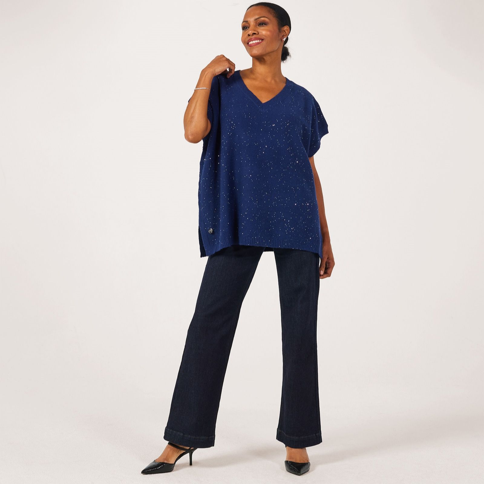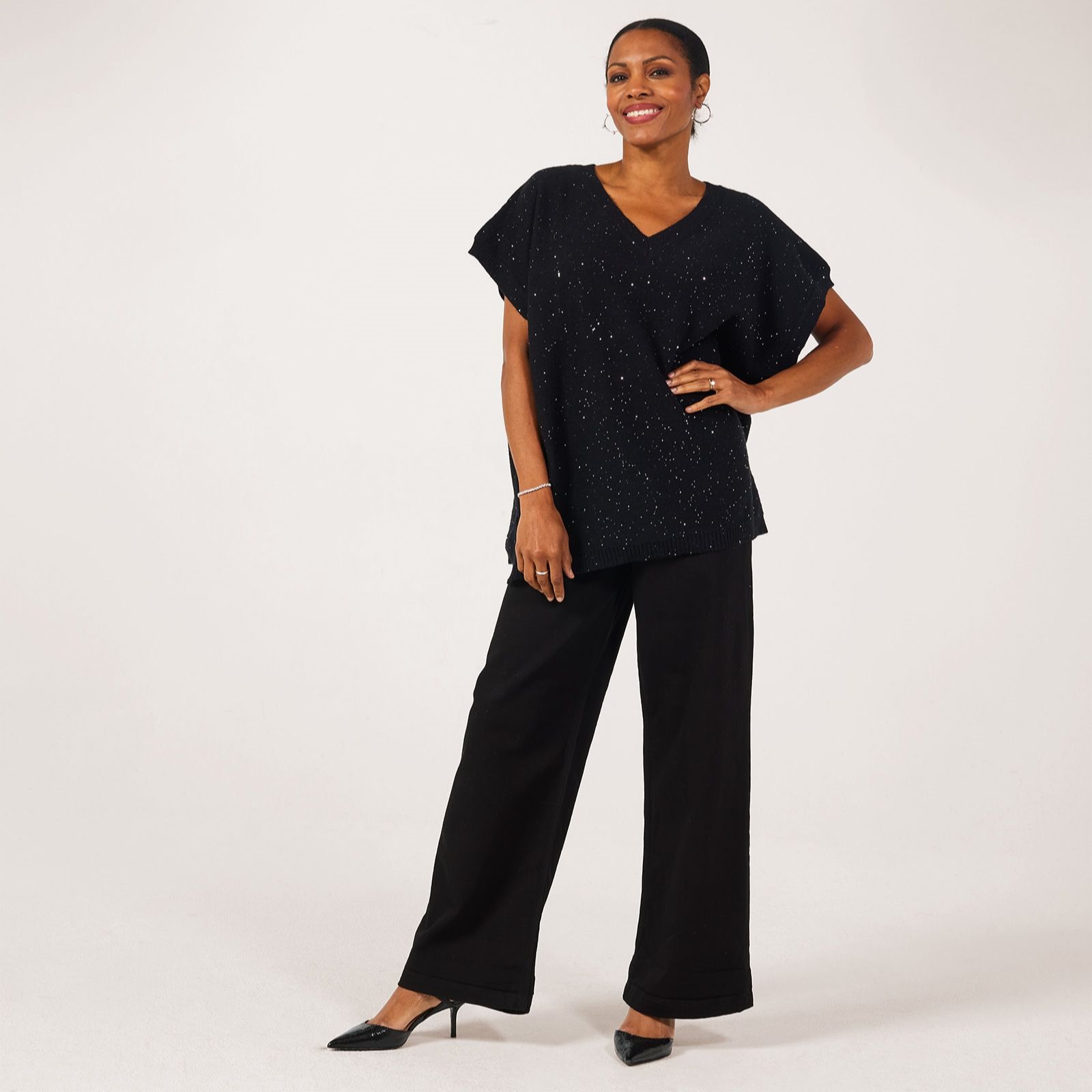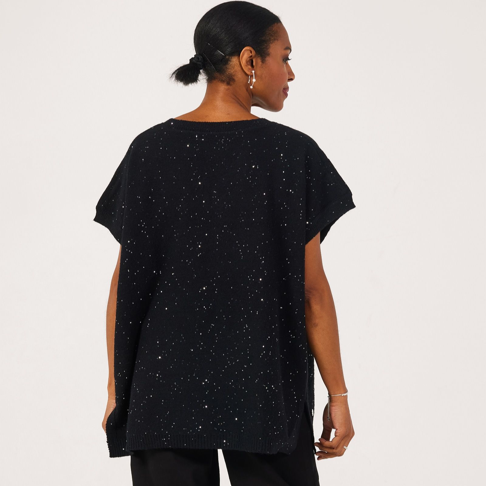Shimmer through every occasion with the sleeveless sequin knit top from Malissa J, designed in a relaxed boxy shape with a flattering V-neck and sparkling embellishments that catch the light beautifully. Whether youre heading out for dinner or adding a touch of glamour to your weekend look, this versatile piece brings effortless elegance to any outfit. Pair it with tailored trousers and heels for a chic ensemble or layer over a crisp white shirt for a modern twist.