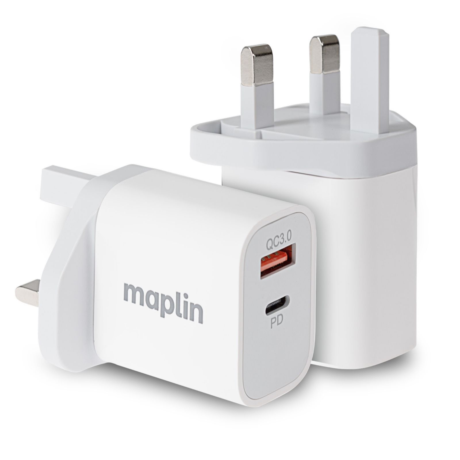 Dual output wall charger: 1 x USB-C PD, 1 x USB-A QC 3.0