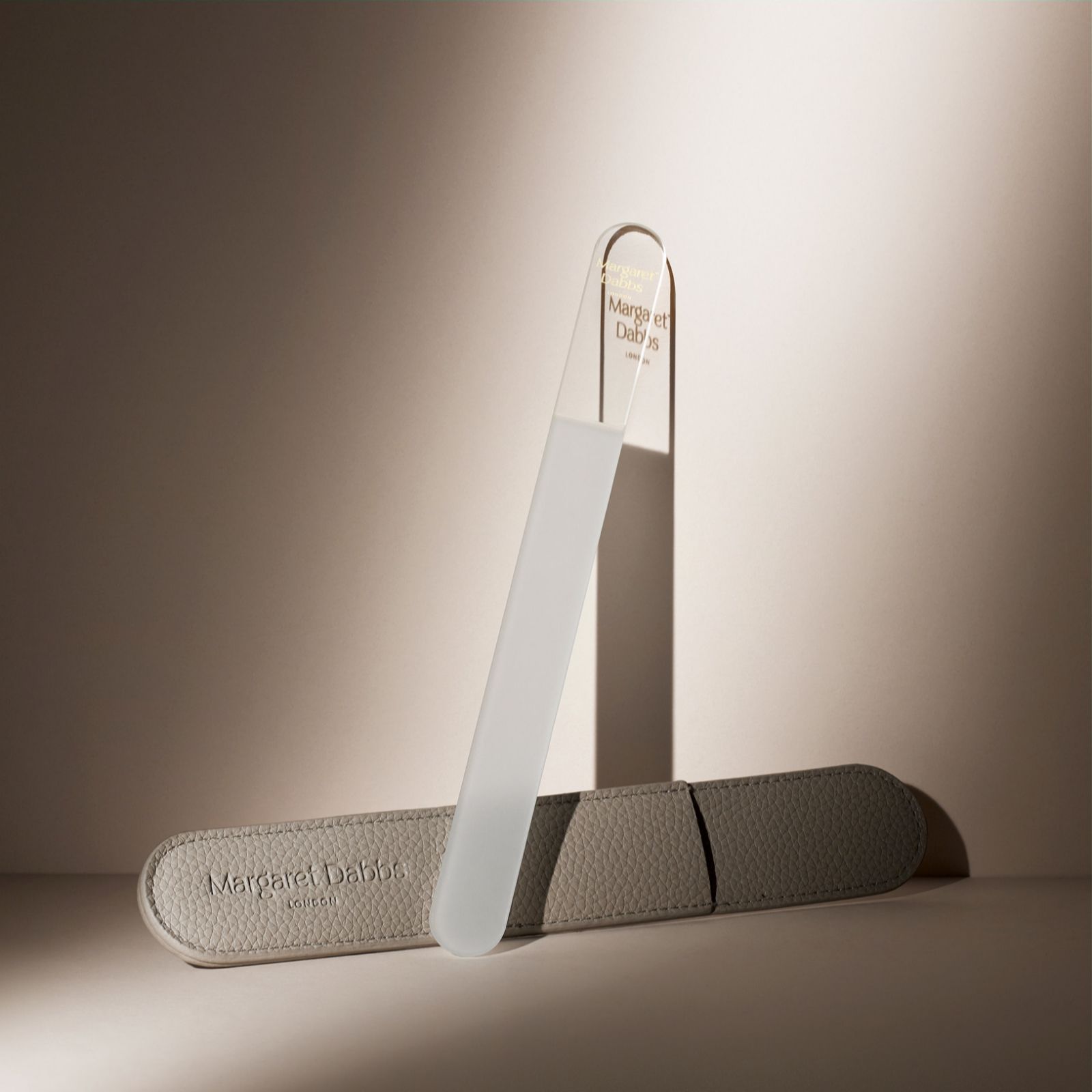 - 1 x Nail File Cover - a taupe, vegan leather nail file cover designed to protect your crystal nail file in style