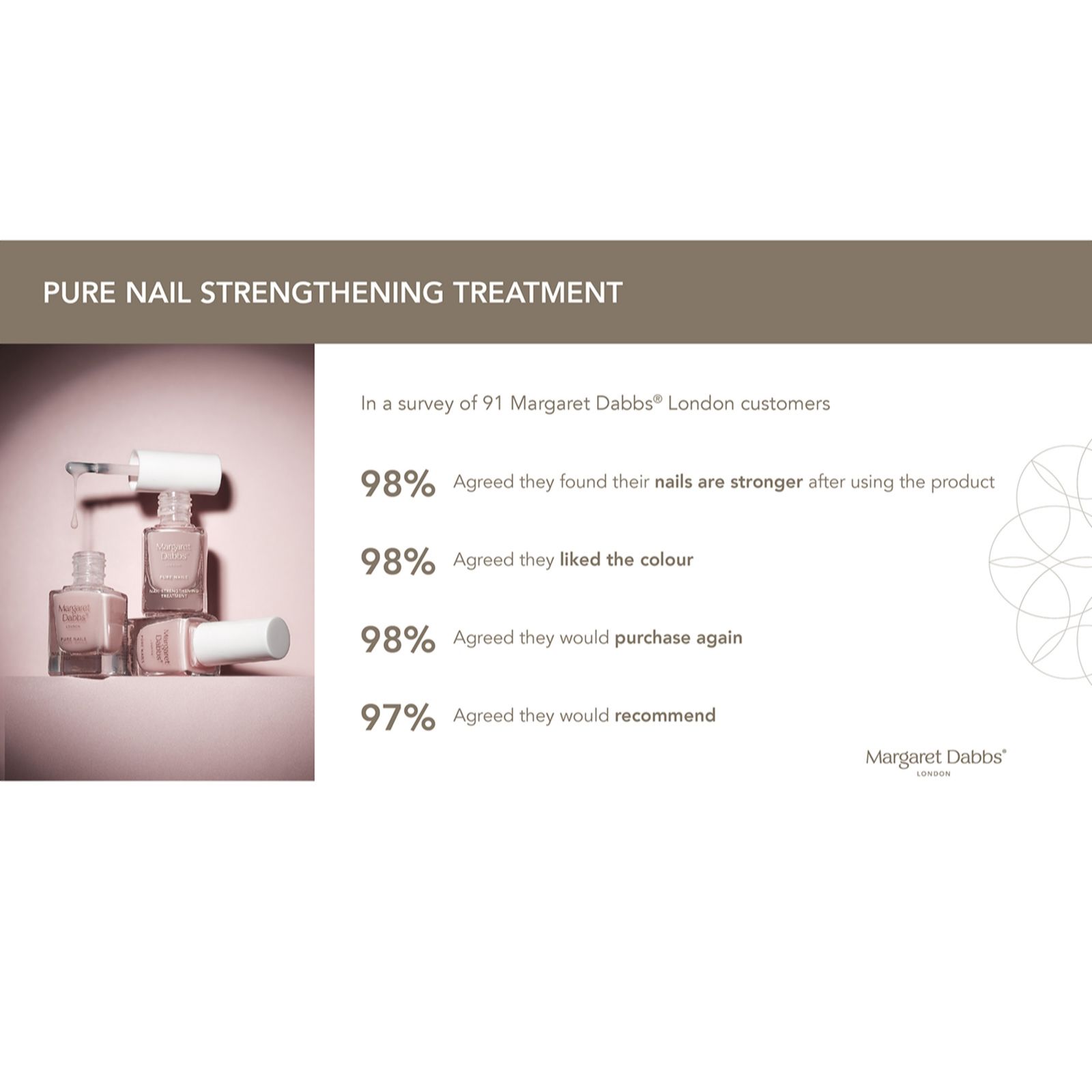 - 98% agreed they found their nails are stronger after using the product