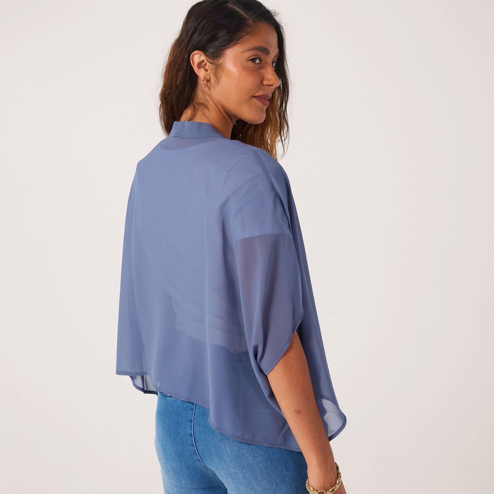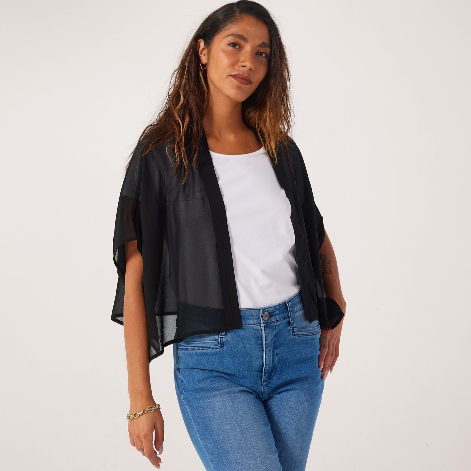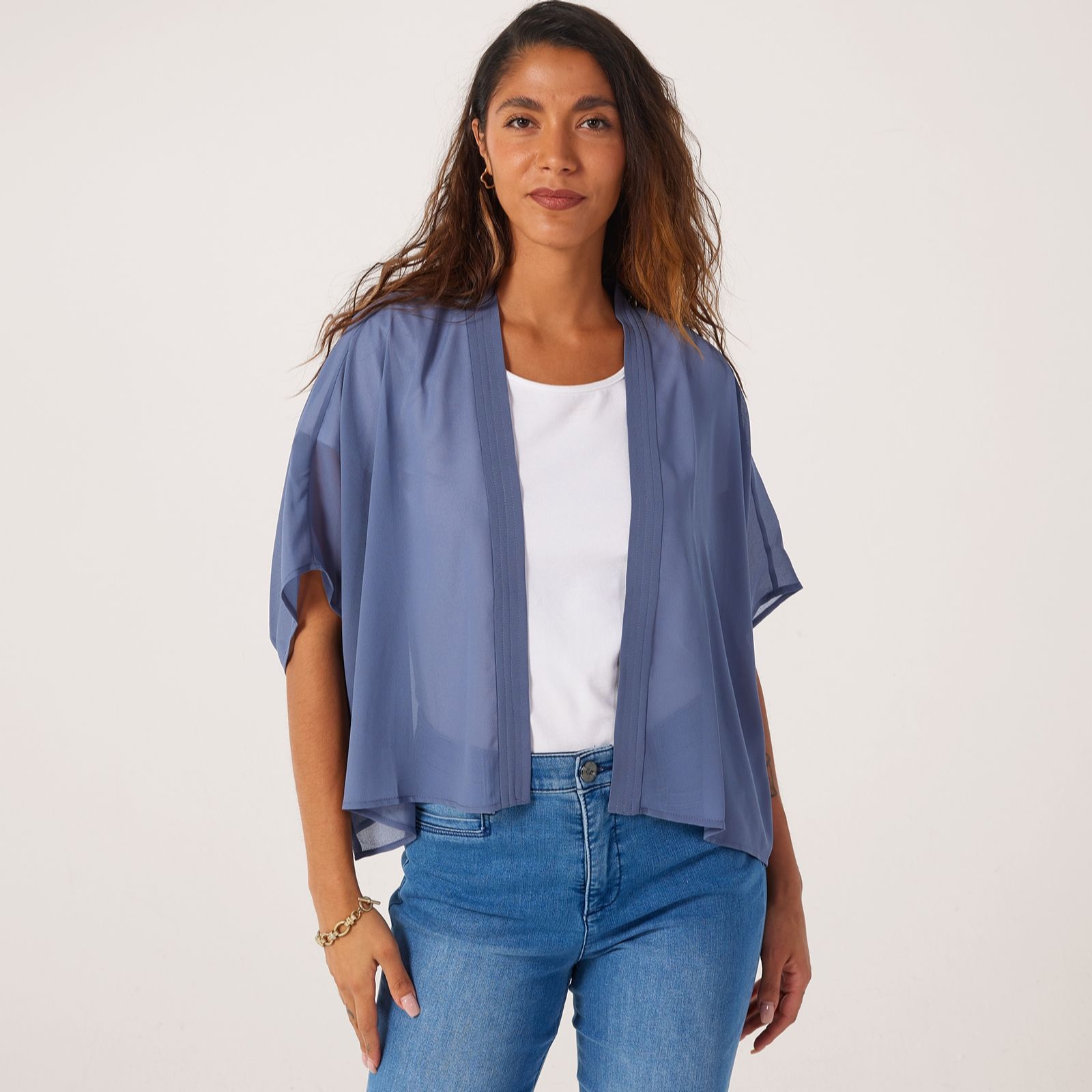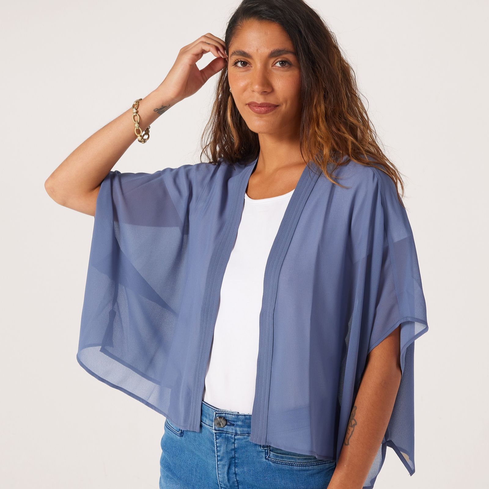 Elevate your layering game with the MarlaWynne Collection chiffon overlay open cardigan. Designed with a loose fit and an open front, this cardigan drapes beautifully, offering an effortlessly chic look. The cap sleeves and lightweight chiffon fabric make it perfect for adding a touch of elegance to any outfit. Whether you're dressing up for a night out or adding a stylish cover-up to your daytime ensemble, this cardigan is a versatile wardrobe essential.