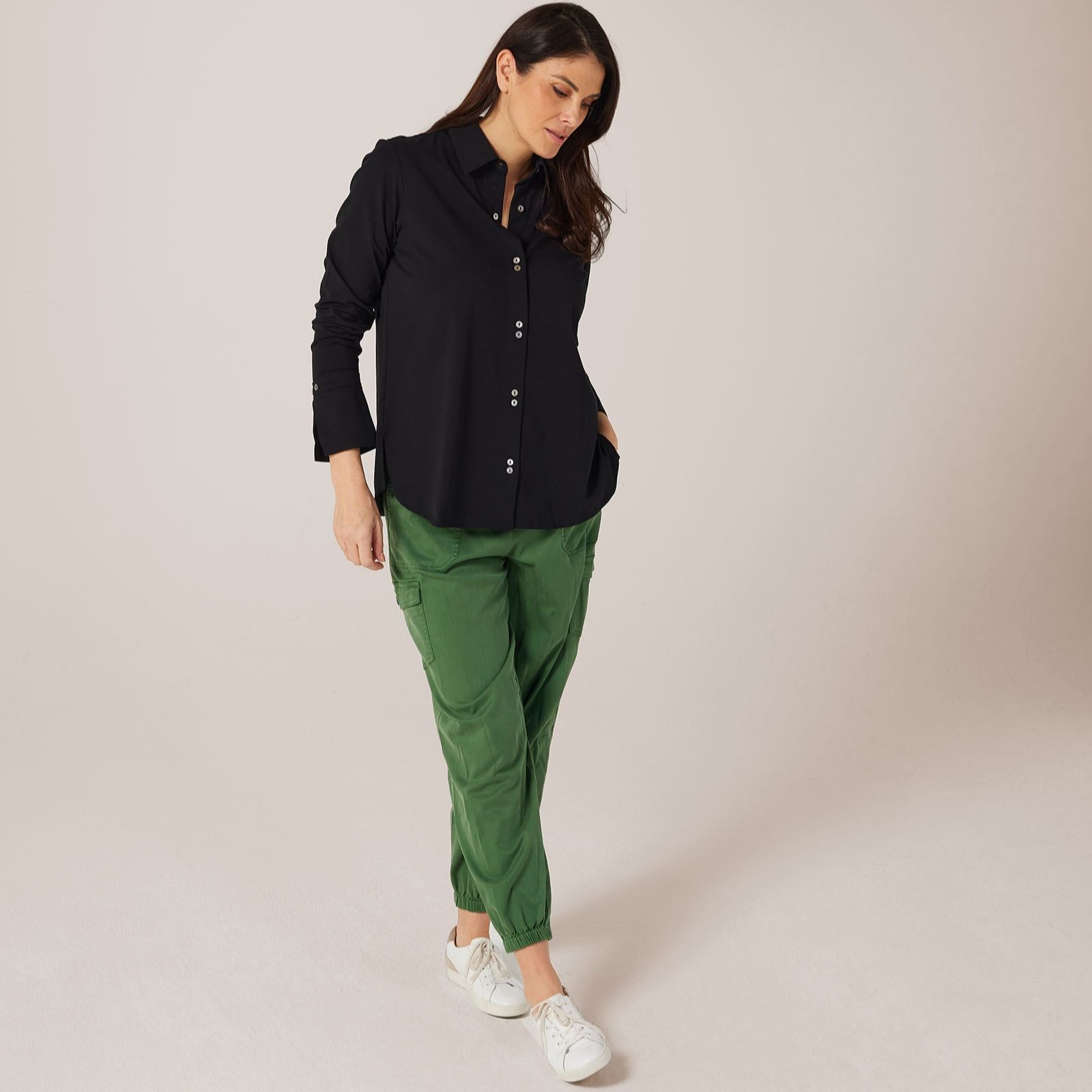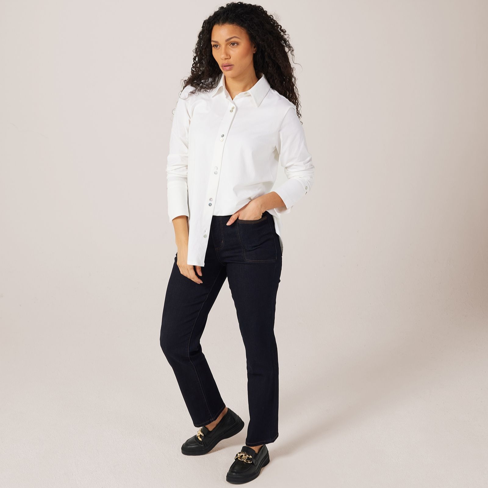Elevate your everyday wardrobe with the MarlaWynne Collection double button wide cuff cotton shirt. This versatile piece features a chic double button detail, a shirt collar and a classic loose fit. Perfect for both professional and casual settings, its long sleeves and elegant back yoke with a centre back inverted pleat add a touch of sophistication. Pair it with tailored trousers for the office or with jeans for a relaxed weekend look.