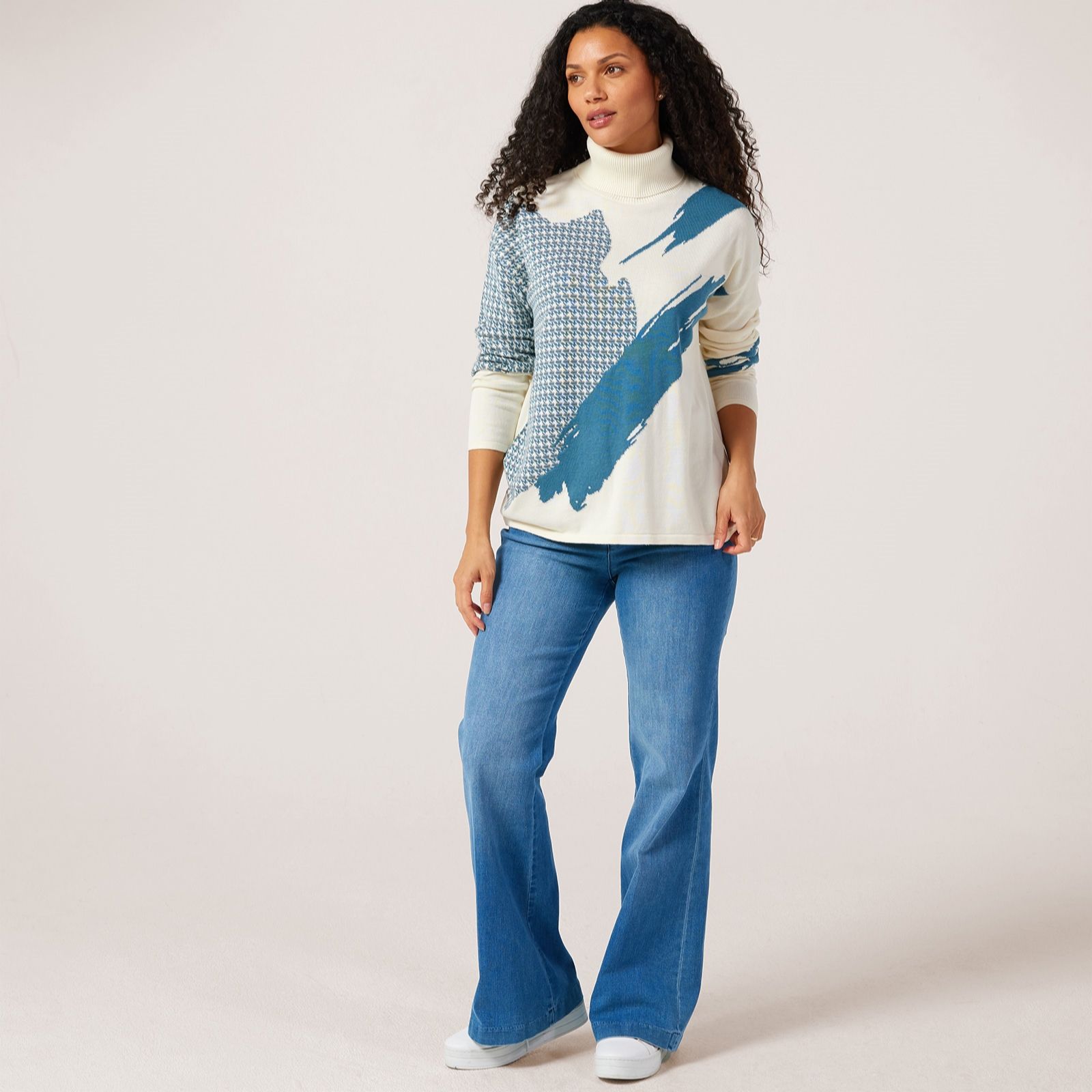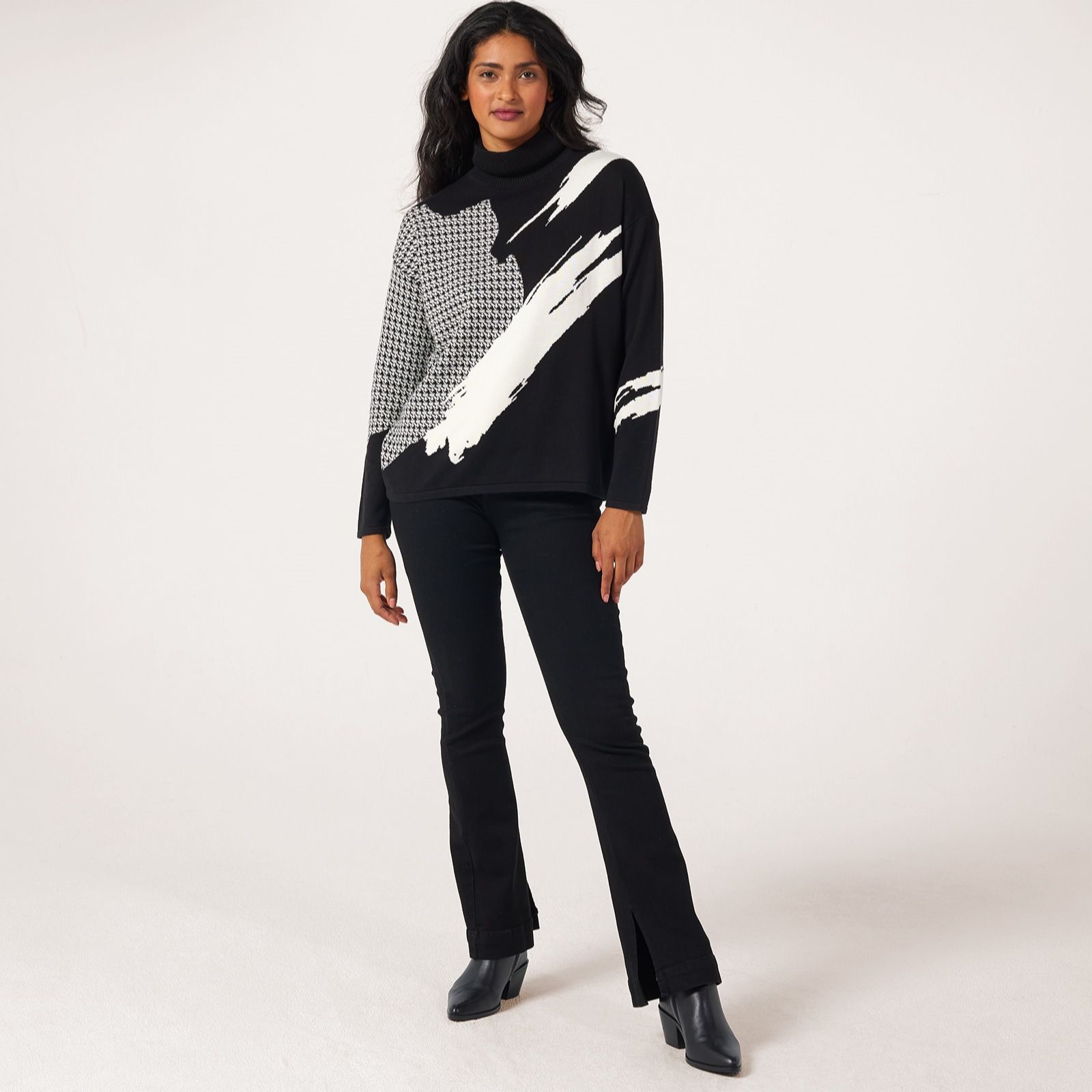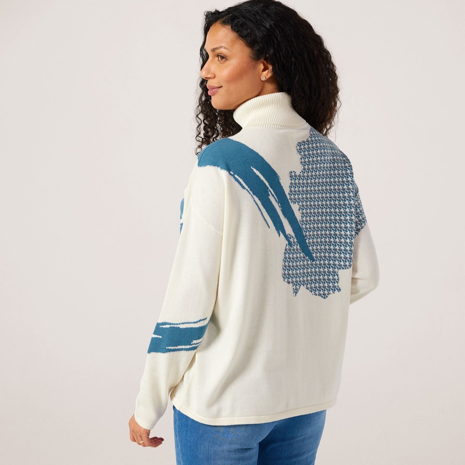 Bring a touch of artistry to your everyday wardrobe with this intarsia turtleneck jumper from MarlaWynne, showcasing a striking print and a comfortably loose fit. Perfect for adding flair to both laid-back and elevated ensembles, this jumper is an easy choice for workdays, weekend outings or relaxed evenings at home. For a modern finish, pair it with tailored trousers and statement earrings.