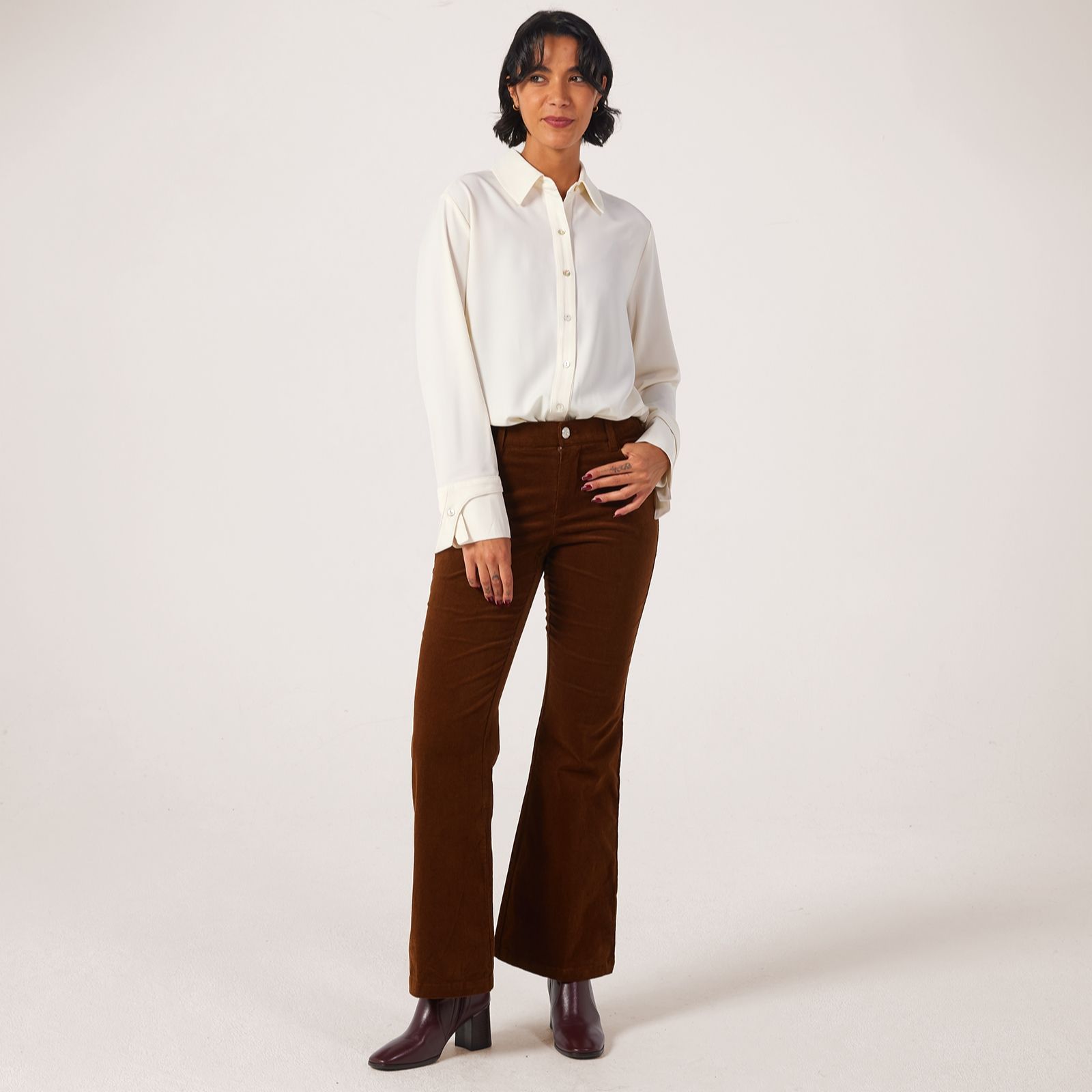 Kick back into effortless style with MarlaWynne's stretch corduroy soft flare trousers, where a flattering fitted shape meets a gentle flare for a modern twist on classic comfort. Perfect for everything from casual brunches to smart evenings out, these trousers promise versatile wear and easy sophistication. Pair them with a crisp blouse and boots to create a chic, layered look for any season.