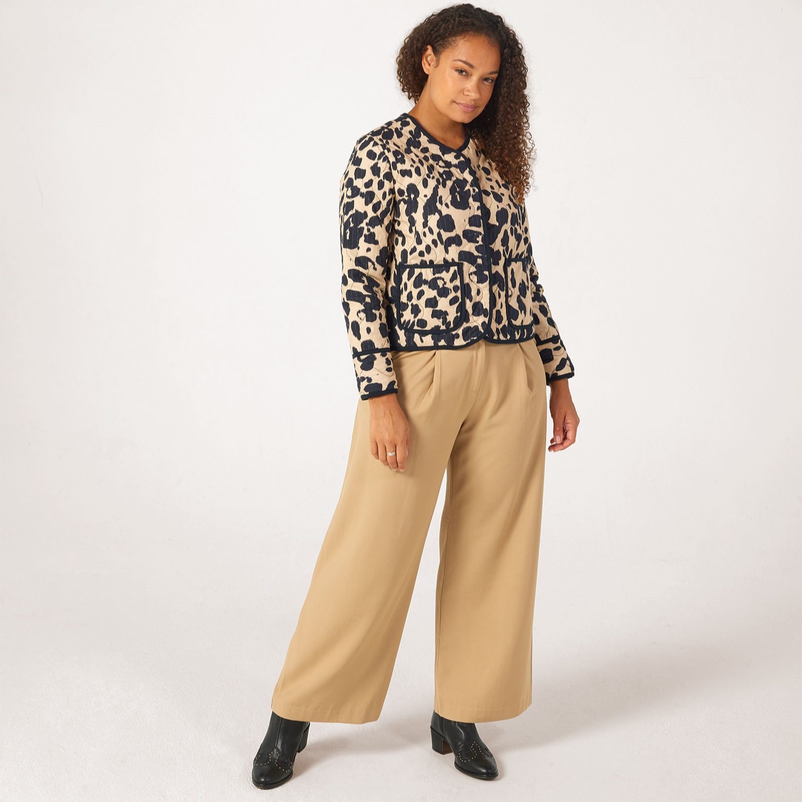 Add a touch of shimmer to your outerwear with the Javira Sparkle Thread Animal Padded Jacket from Masai Copenhagen. This quilted design features a striking animal print with Lyrex sparkle thread, offering a unique take on classic padded jackets. Perfect for brightening chilly days, its straight, regular fit and long sleeves ensure comfort and style whether youre out for coffee or exploring the city. Try layering it over a roll-neck and jeans for a chic, effortless look.