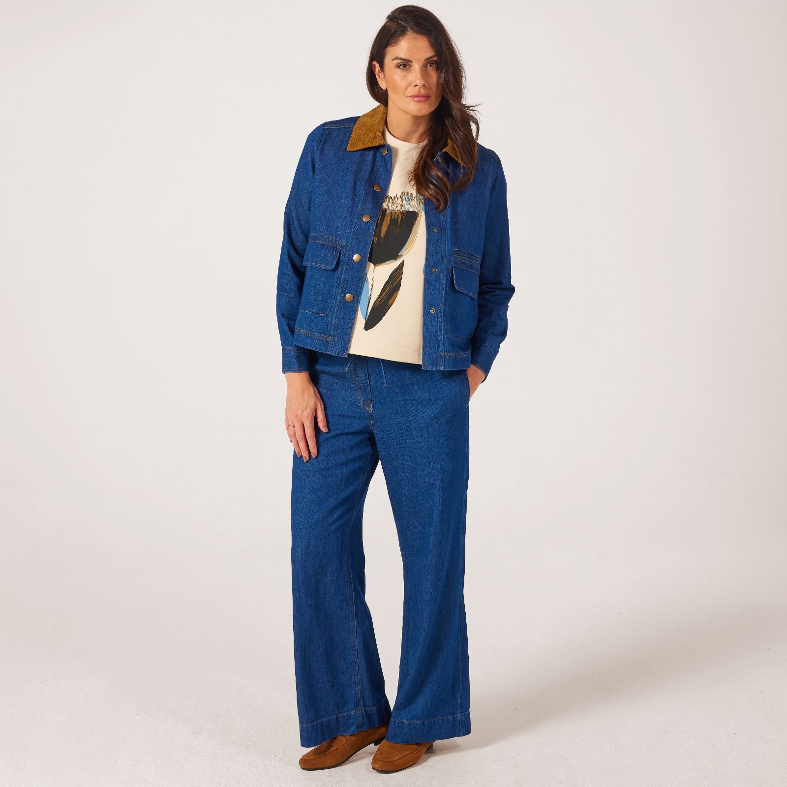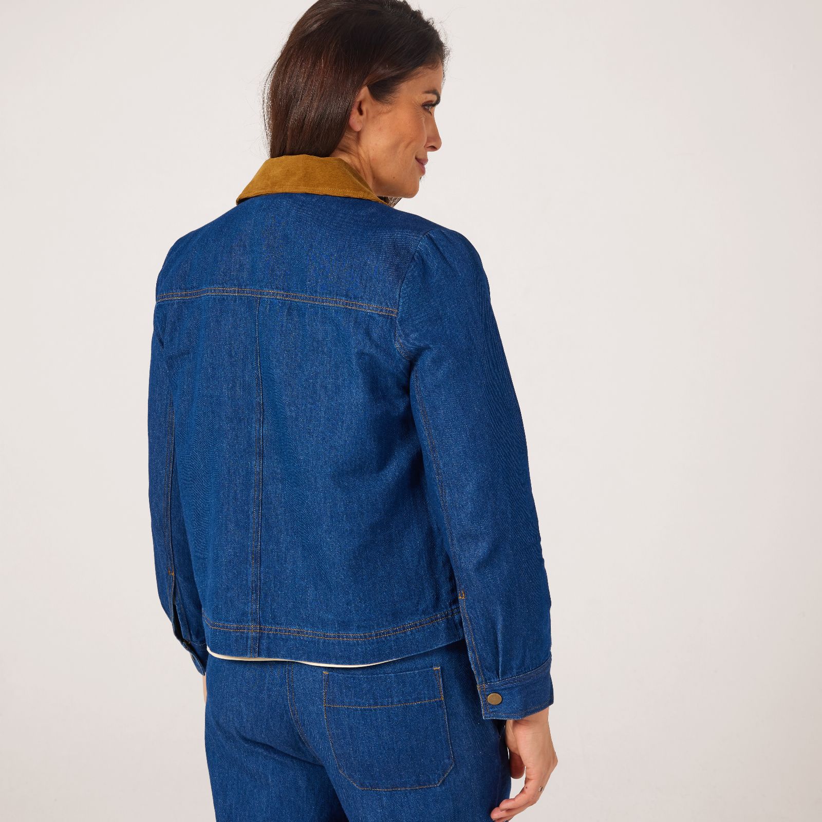 Masai Copenhagen brings a refined twist to classic denim with the Julemi jacket, featuring a sumptuous velvet collar that adds a touch of elegance to its straight, regular fit silhouette. Perfect for layering over casual looks or adding polish to smart-casual outfits, this versatile piece works beautifully from weekday errands to weekend brunch. Pair it with tailored trousers for a chic contrast or style with a midi skirt for effortless charm.