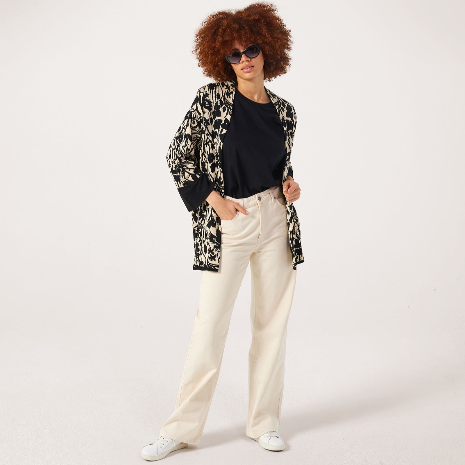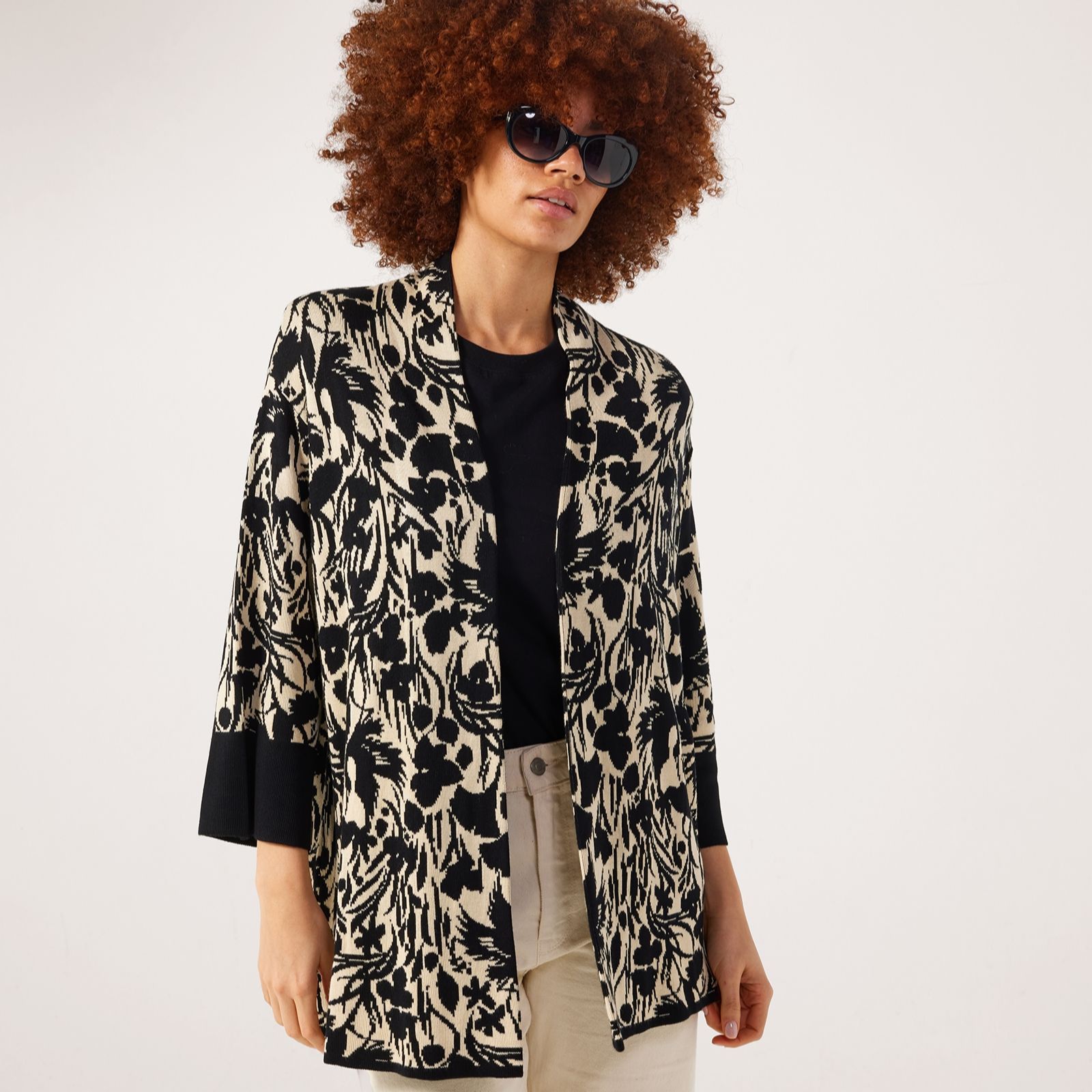 Add a layer of elegance to your outfit with the Masai Copenhagen Luciana Cardigan. This beautifully crafted cardigan features a straight, loose fit and 3/4 sleeves, making it a versatile piece for any wardrobe. The intricate knit double jacquard design adds a touch of sophistication, perfect for both casual and formal occasions. Pair it with your favourite dress or jeans for a chic, effortless look that transitions seamlessly from day to night.
