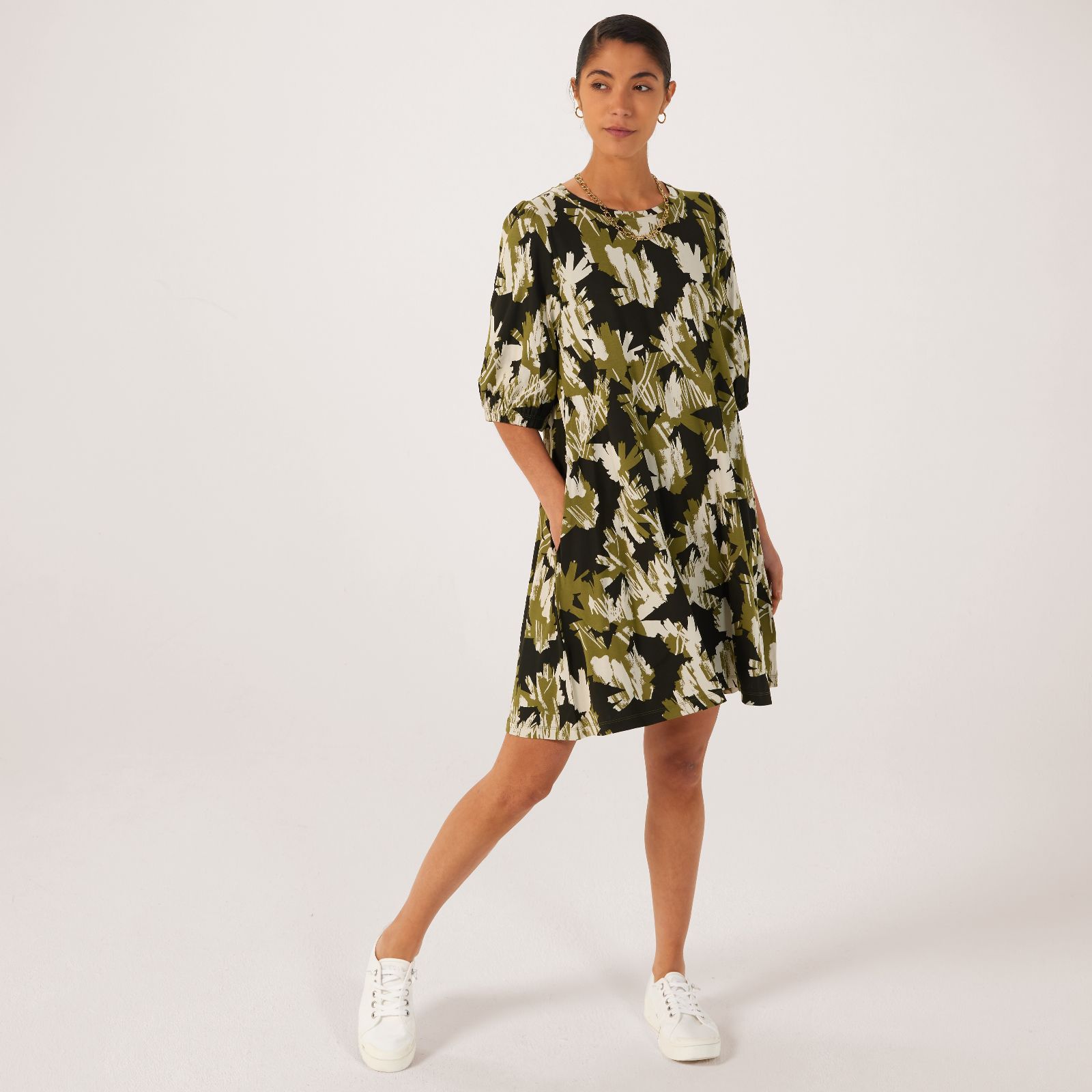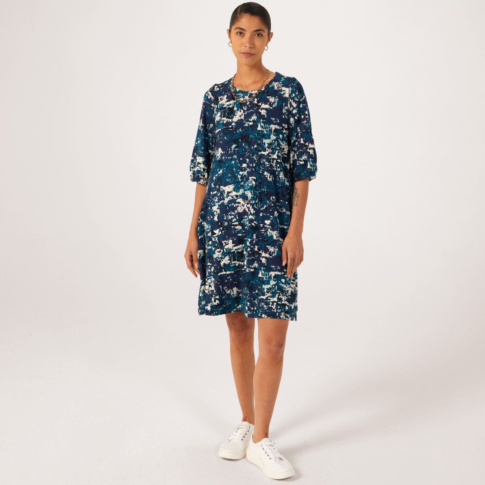 Step into effortless elegance with the MaGoami printed jersey tunic from Masai Copenhagen. This tunic features an eye-catching print and an A-shape design that creates a stunning silhouette, while the elasticated cuffs on the 1/2 sleeves add a touch of sophistication. Perfect for both casual outings and more polished occasions, this versatile piece will become a staple in your wardrobe. Pair it with your favourite skinny jeans and ankle boots for a chic, everyday look, or on its own with a statement necklace for a showstopping night out.