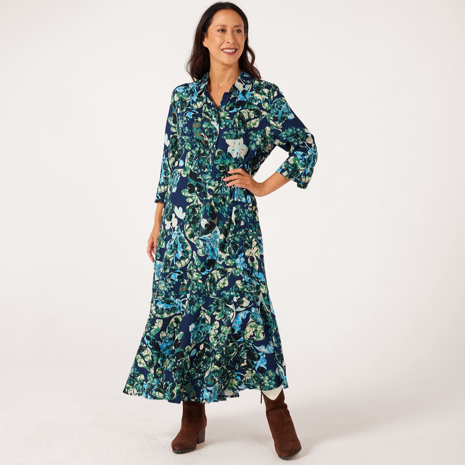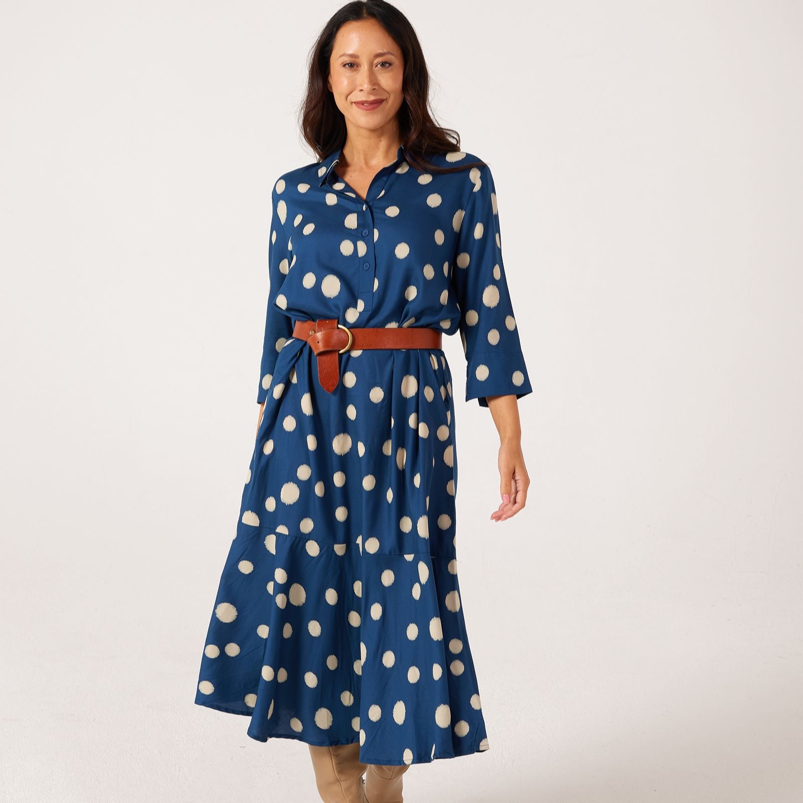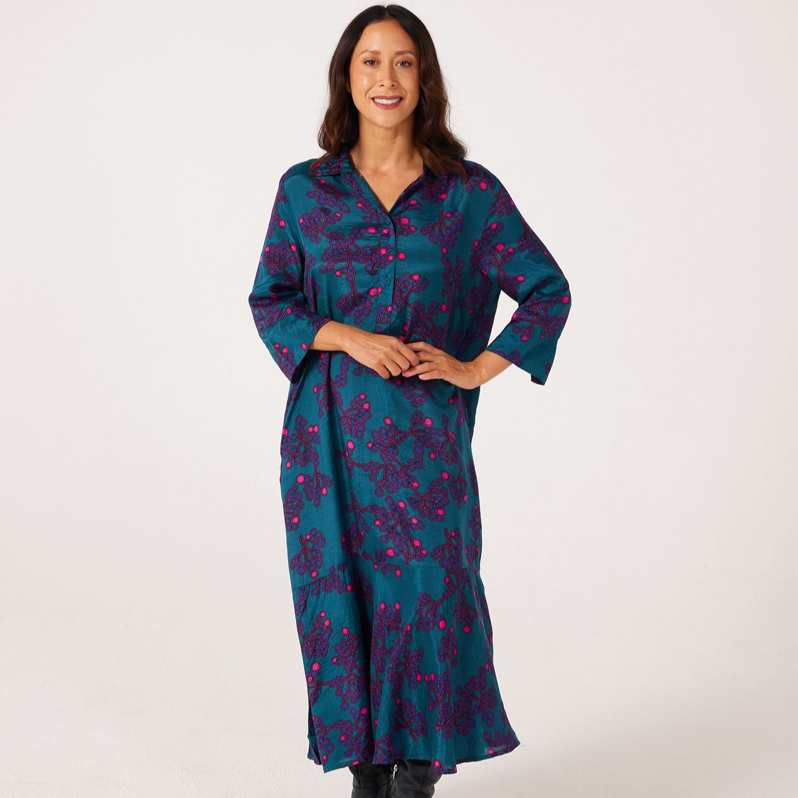 Turn heads wherever you go with the Nimuene printed dress from Masai Copenhagen, a classic A-shape design adorned with an eye-catching print and timeless shirt collar. Effortlessly chic, its 3/4 sleeves and soft drape make it perfect for everything from relaxed lunches to smart gatherings. Try styling it with ankle boots or trainers for an easy day-to-evening look.