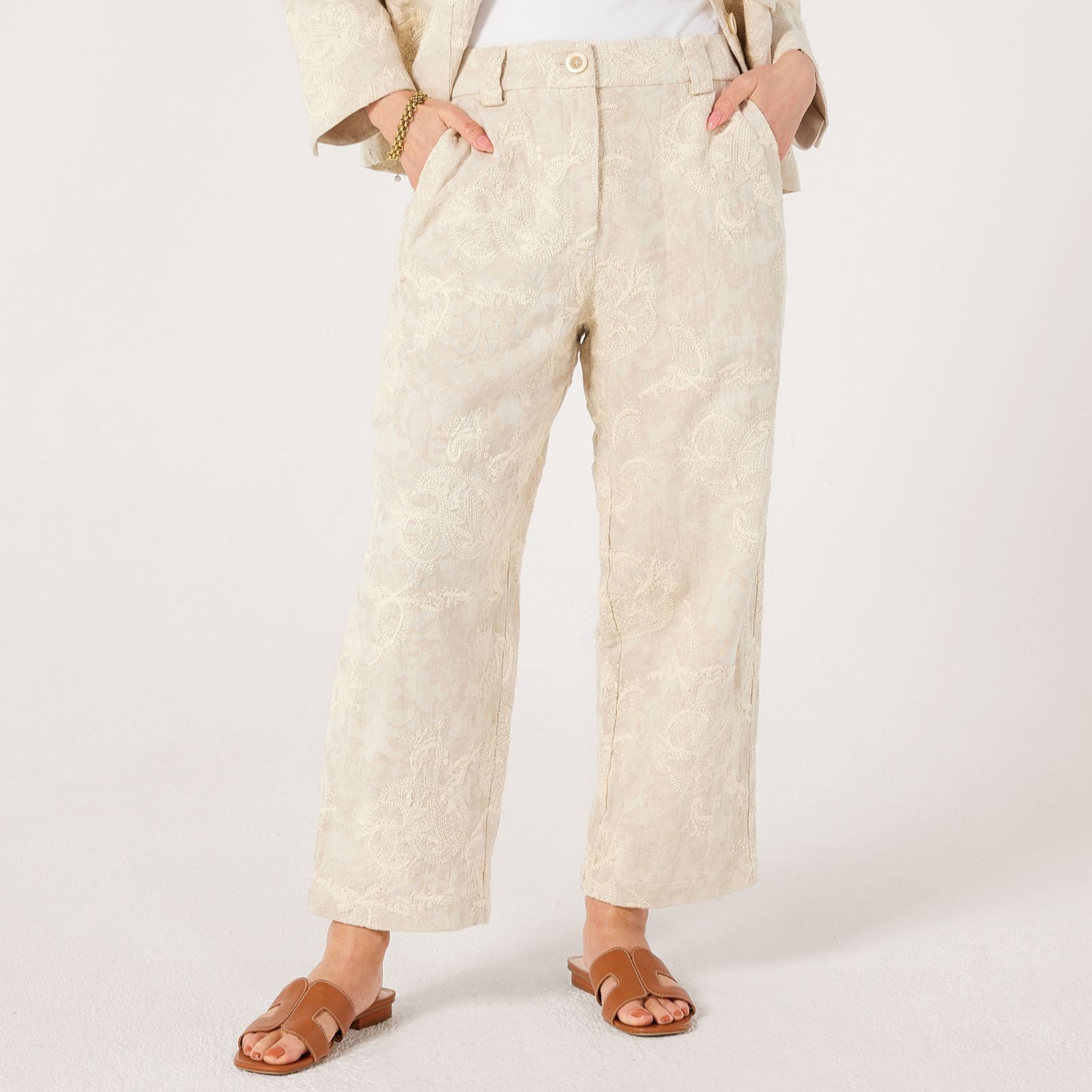 Bring a touch of relaxed sophistication to your everyday wardrobe with the Paelith embroidered trousers from Masai Copenhagen. Crafted in a straight-leg silhouette with a softly structured feel, these trousers feature delicate embroidery that adds an artisanal charm to their casual elegance. Perfect for both laid-back afternoons and polished weekend outings, they pair beautifully with a flowing blouse or a simple tee for effortless style.