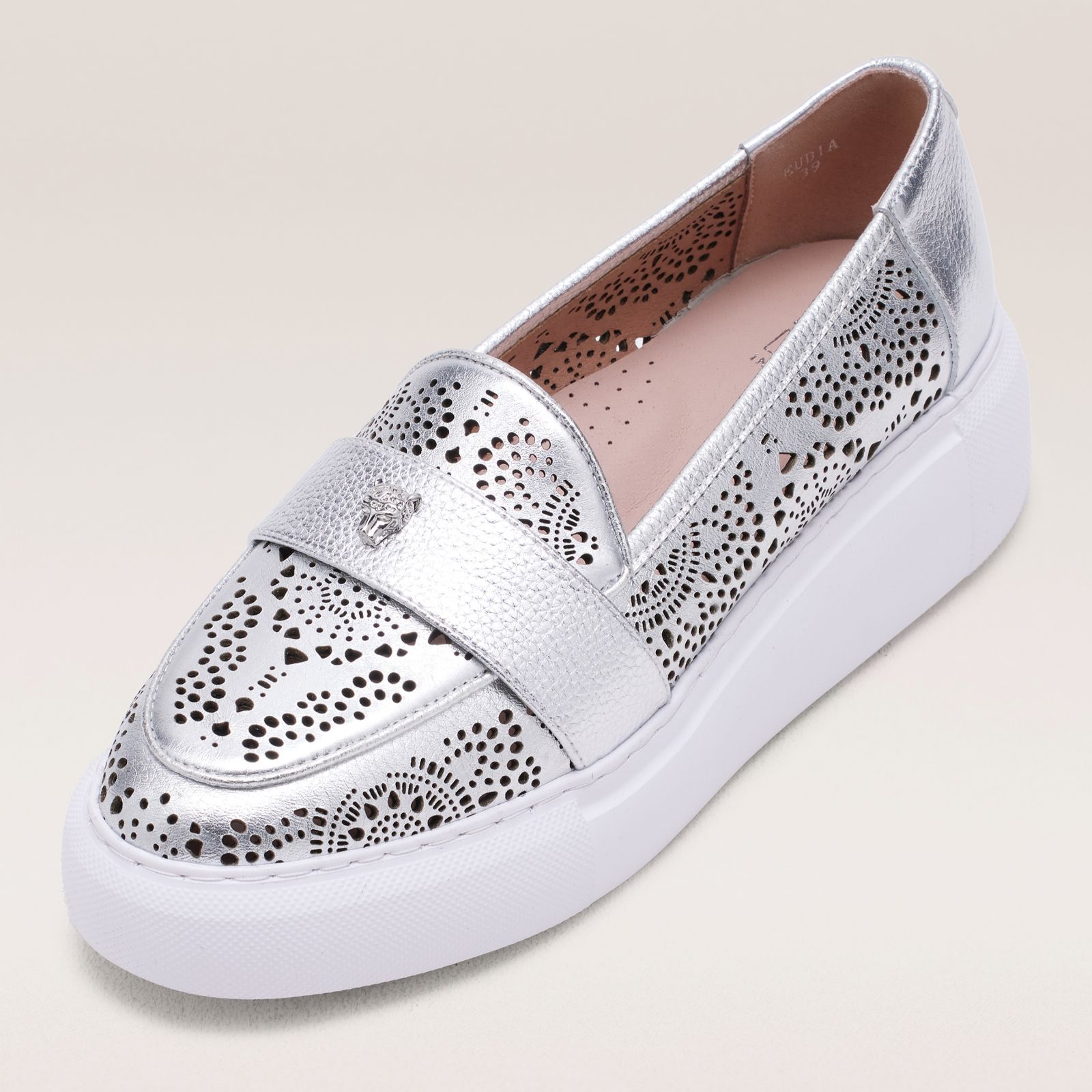Embody refined elegance with the Moda in Pelle Eudia loafers. These standout shoes showcase intricate laser-cut detailing and a touch of glamour with Larry beads. Crafted from high-quality leather, they're perfect for both office wear and casual outings. Pair them with tailored trousers for a polished look or with a casual dress for a chic weekend ensemble.