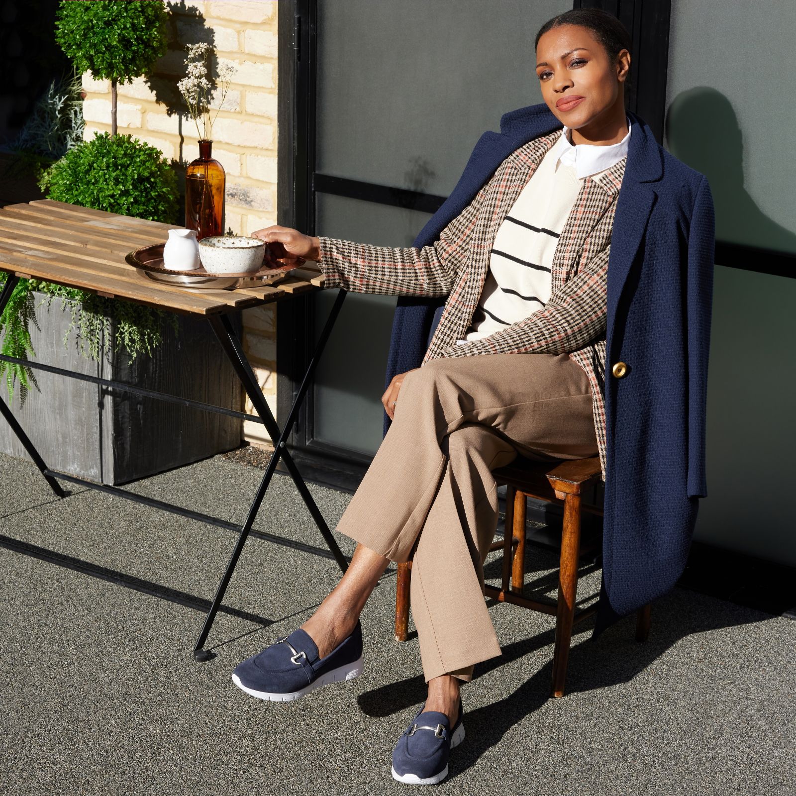 - boasting the comfort of trainers with the chic style of a classic loafer, this design features lightweight, ridged outsoles to provide super flexibility. Plus, padding to the apron and underfoot to help keep your feet feeling happy all day long.