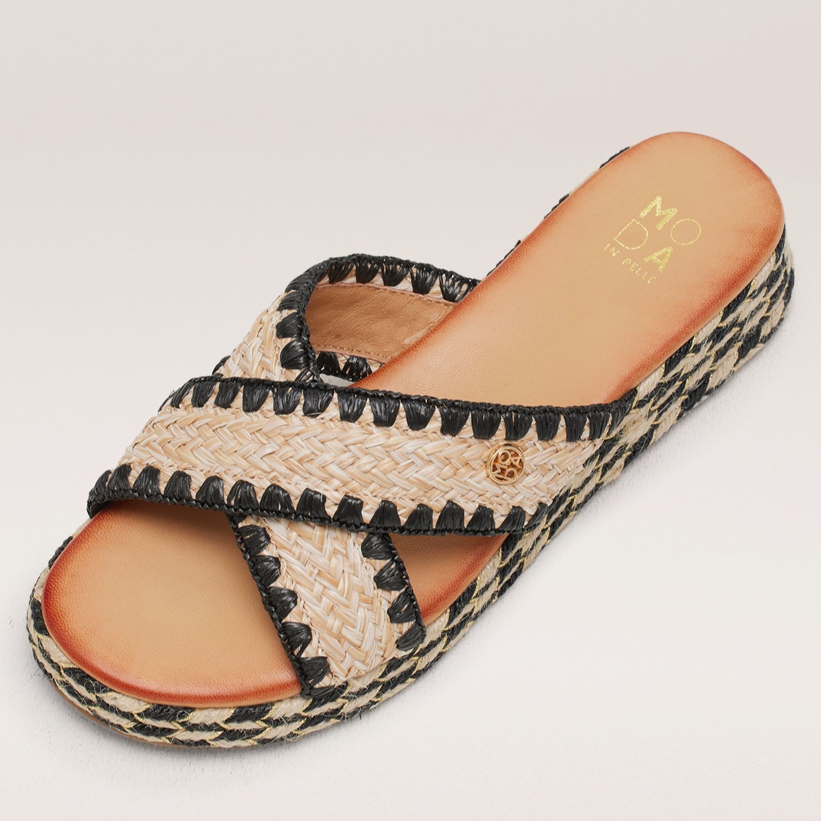 Step into effortless style with the Karri wedge sandal from Moda In Pelle. These slip-on sandals feature a chic raffia whip stitch design and a low wedge heel, offering the perfect blend of elegance and comfort. Perfect for both casual outings and dressier occasions, the Karri effortlessly complements sundresses or tailored trousers, making them your go-to choice for versatile styling.