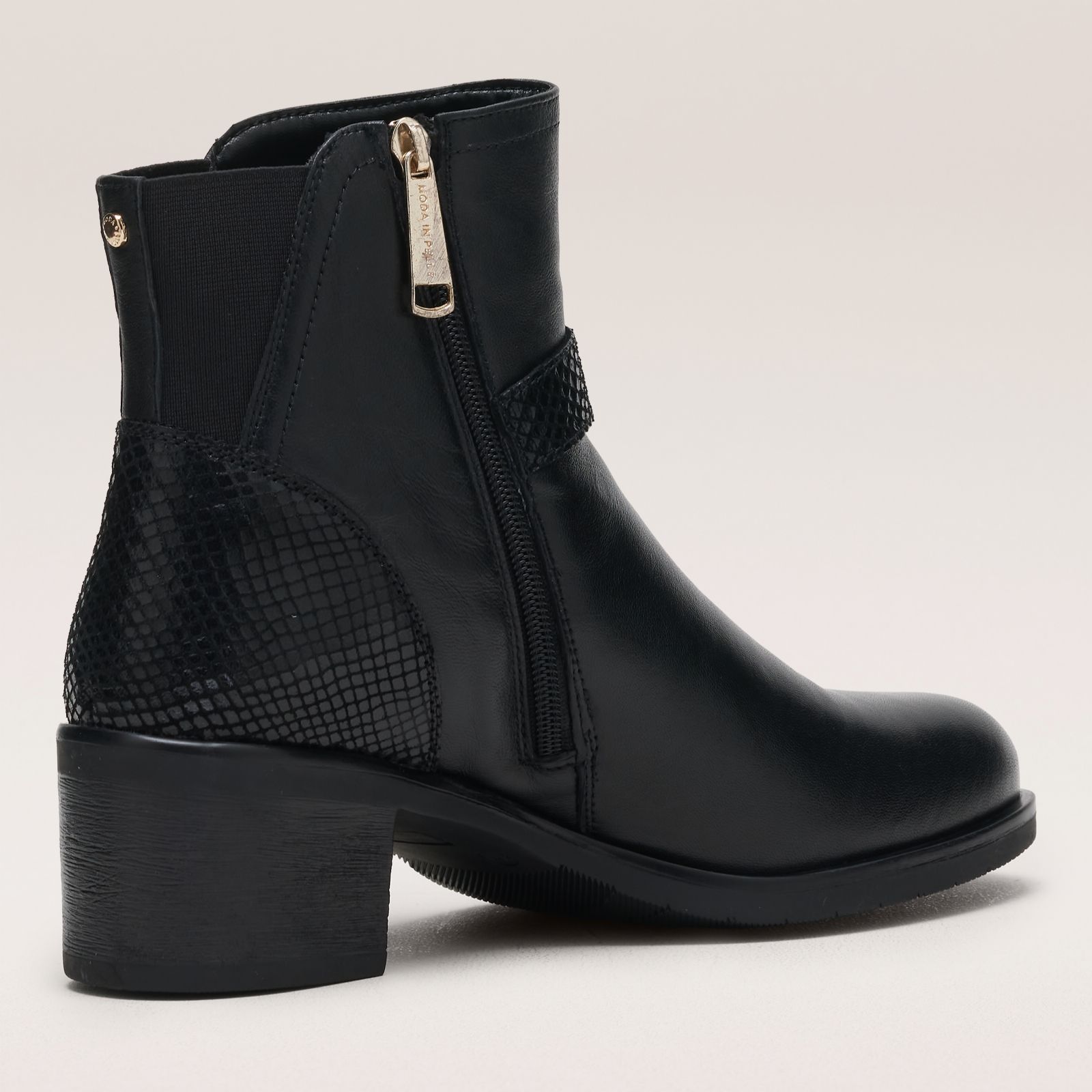 Elevate your style with the Leighton leather boots from Moda In Pelle. These classic boots feature a sophisticated design and a chic yet comfortable heel. The zip fastening ensures a snug fit and easy wear, while the sleek silhouette adds a touch of elegance to any outfit. They're perfect for both day and night, effortlessly transitioning from the office to an evening out. Pair them with tailored trousers for a polished outfit or a midi dress for an effortless look.