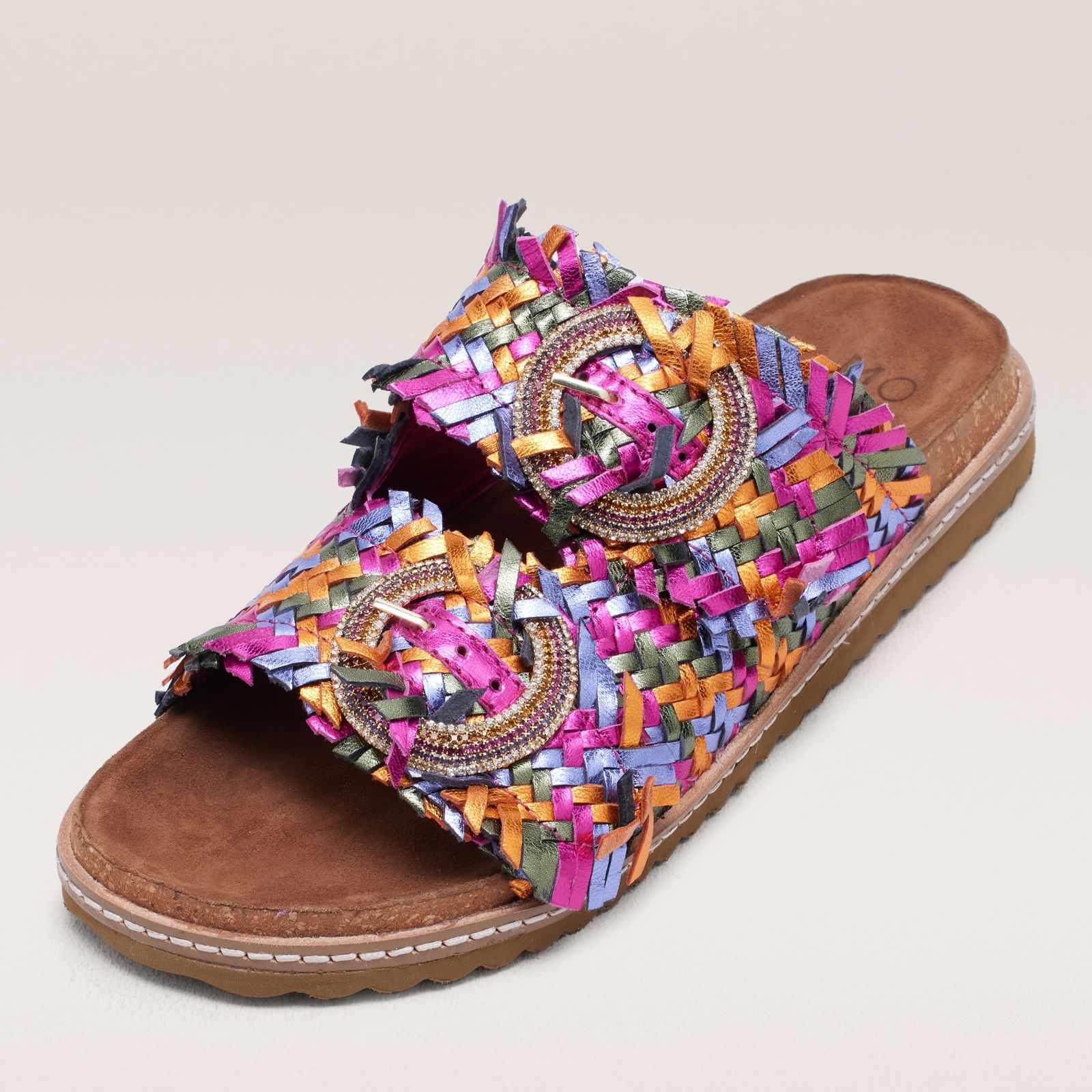 Add a touch of glamour to your summer wardrobe with the Moda In Pelle Olisia Leather Slide. These glitzy footbed sandals are designed for comfort and ease with their slip-on design, making them perfect for casual outings or relaxed evenings. Slip them on with your favourite sundress for a chic, laid-back look, or pair them with jeans for a more polished ensemble.