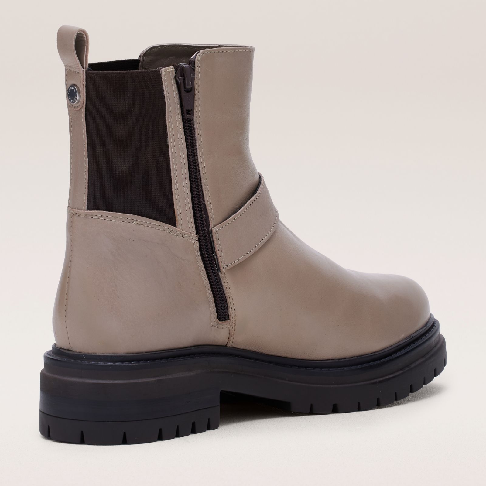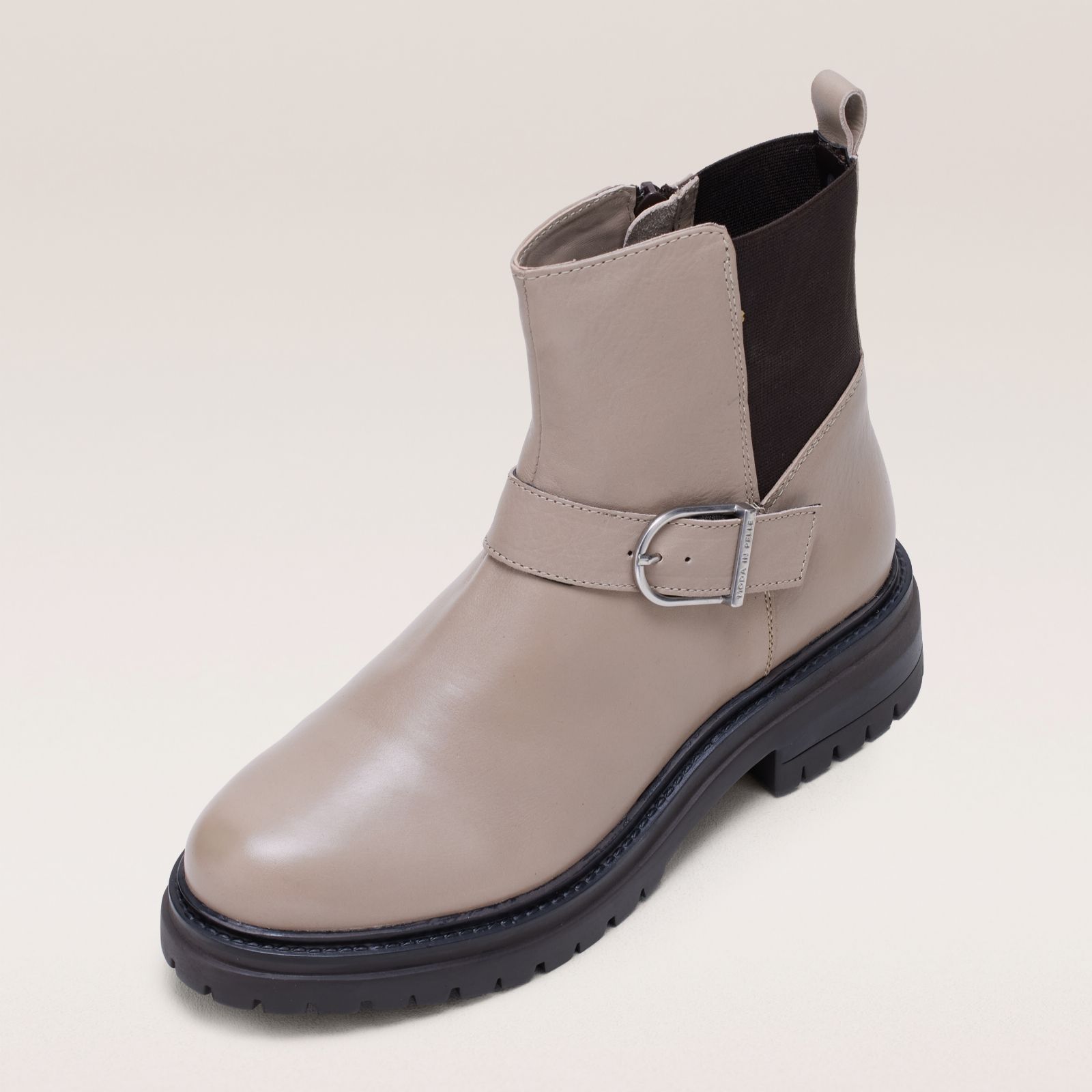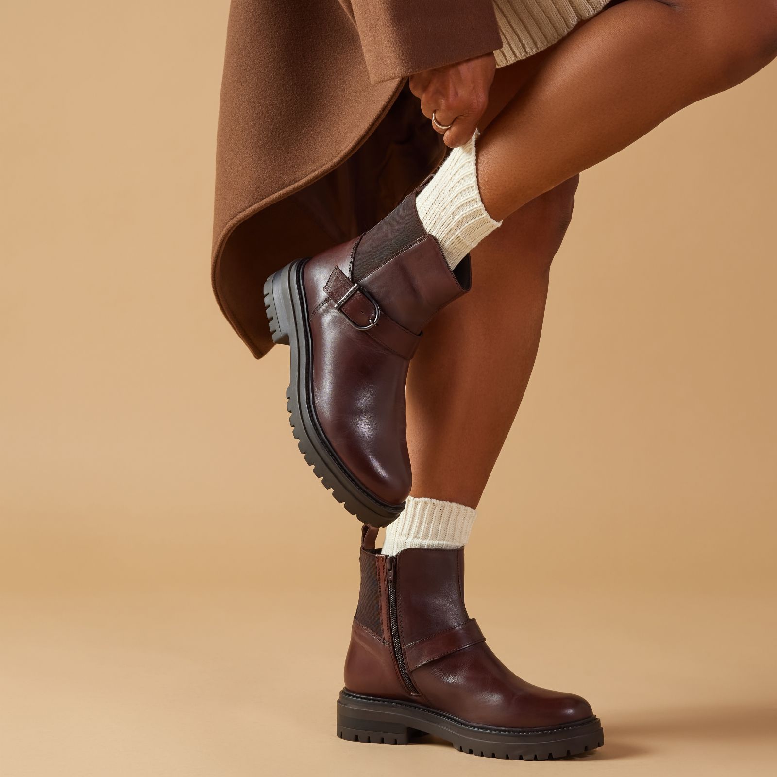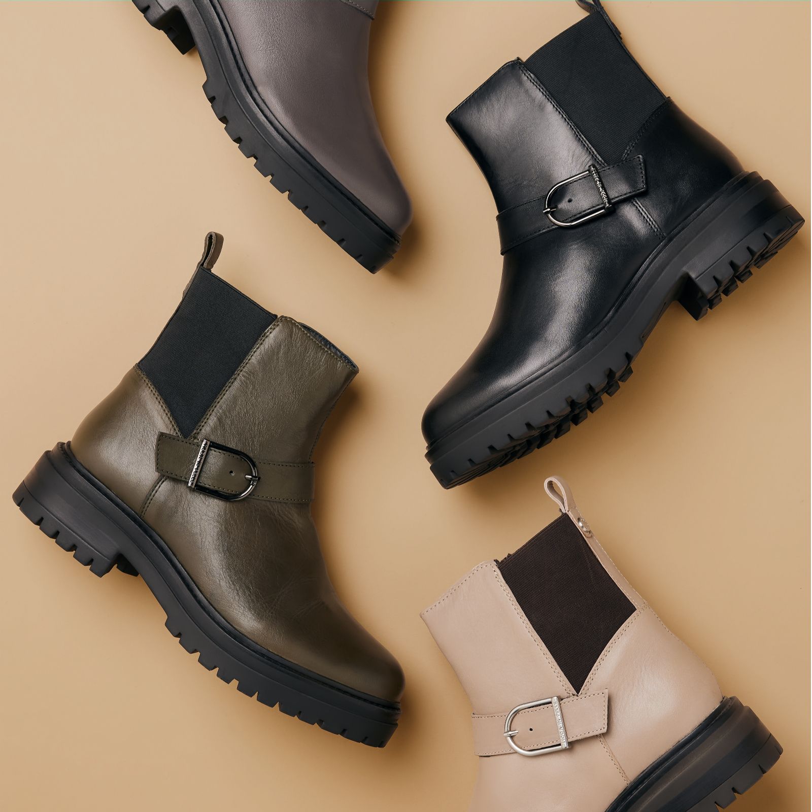 with their shiny leather finish, chunky soles and stretchy ankle panels, these boots are a modern update to your winter wardrobe, balanced beautifully with the classic strap details at the front. Offering timeless appeal, they'll carry you through this season and beyond.