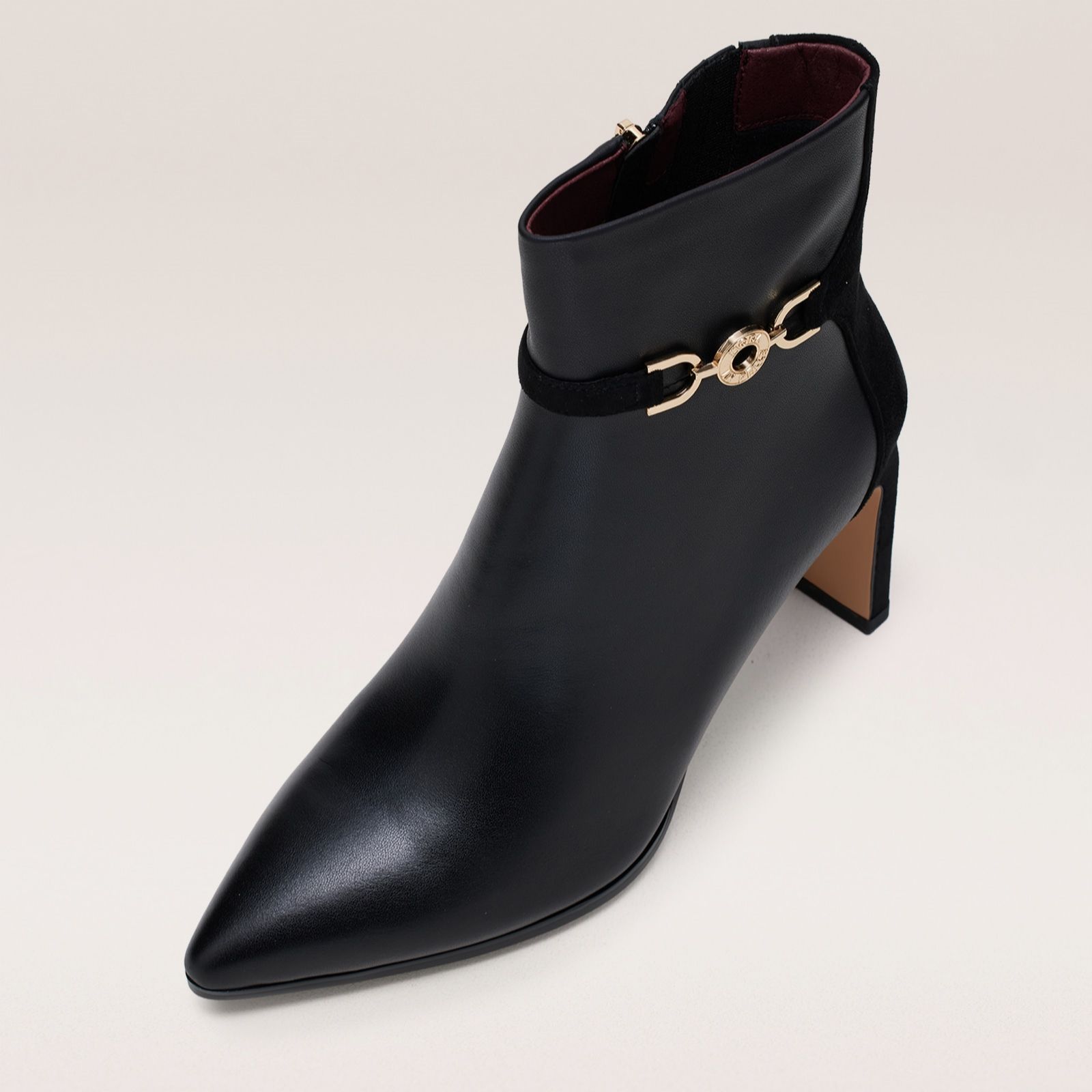 Define elegance with the Pallia ankle boots from Moda in Pelle, showcasing a sleek pointed toe and chic trim detailing that exudes sophistication. Perfect for elevating both office attire and evening outfits, these boots offer a versatile style that transitions seamlessly from day to night. Pair them with tailored trousers or a flowing midi skirt for an effortlessly polished look.