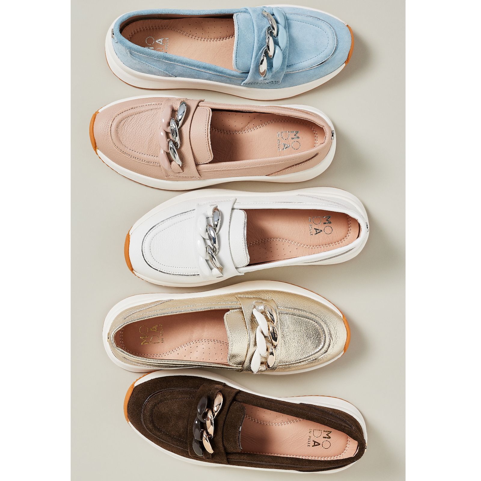 Jump into the athleisure trend with the Sorrento Loafer from Moda in Pelle, currently only available at QVC. These standout loafers are the perfect way to uplift any look, with their classic loafer detailing and athletic, trainer-style outsole, creating a unique yet polished silhouette that works from desk to dinner and beyond. They don't scrimp on comfort, either: their luxe leather construction, cushioned insoles and flexible soles ensure you'll feel light on your feet and fashion-forward all day long.