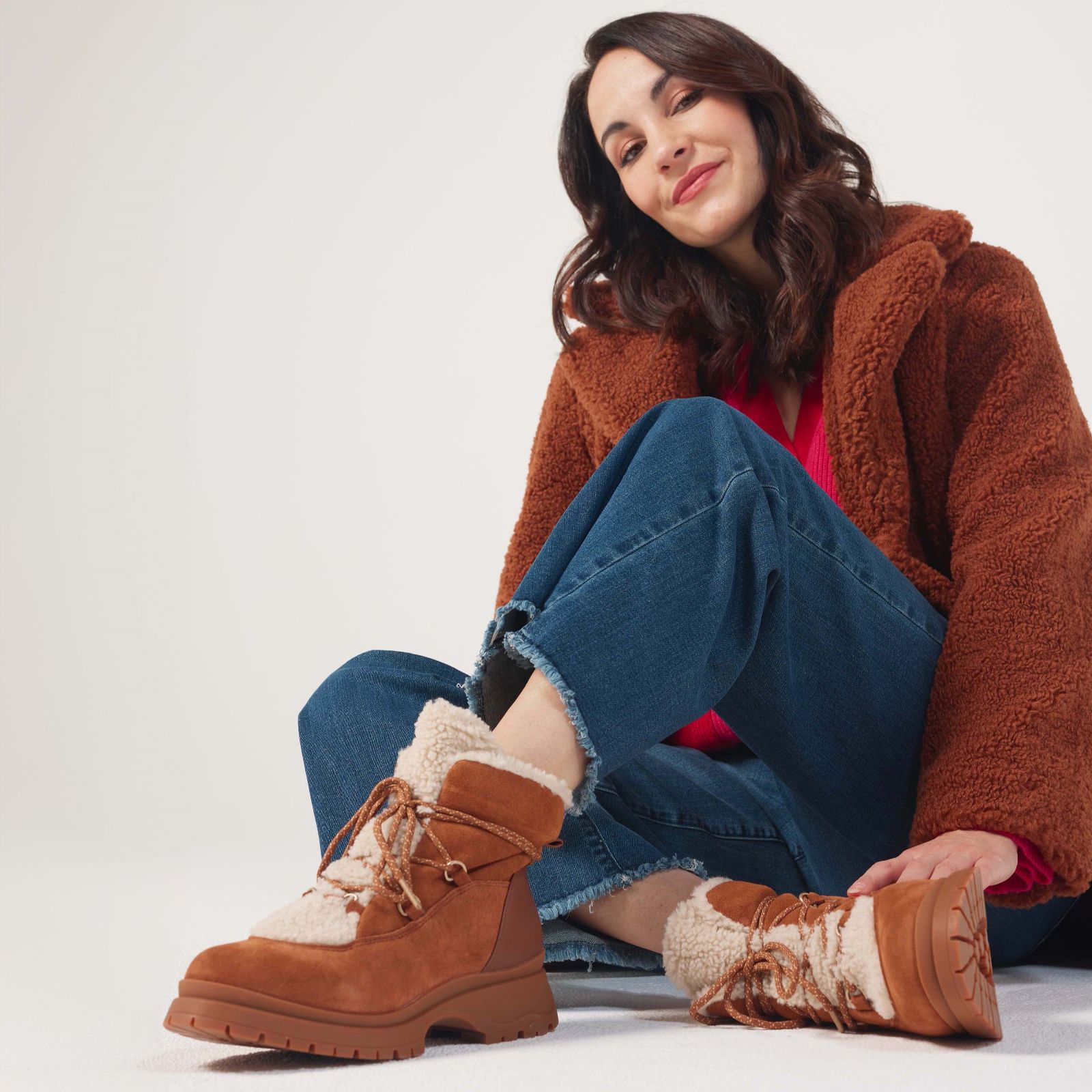 - with these boots in your collection you’ll be able to keep your feet warm and stylish as you navigate through winter days and nights. Pair them with your favourite jeans and a cosy jumper for a sleek casual look, upping the alpine style vibe with a wintry puffer jacket, or pop them on with tights and a skirt for a more polished ensemble.