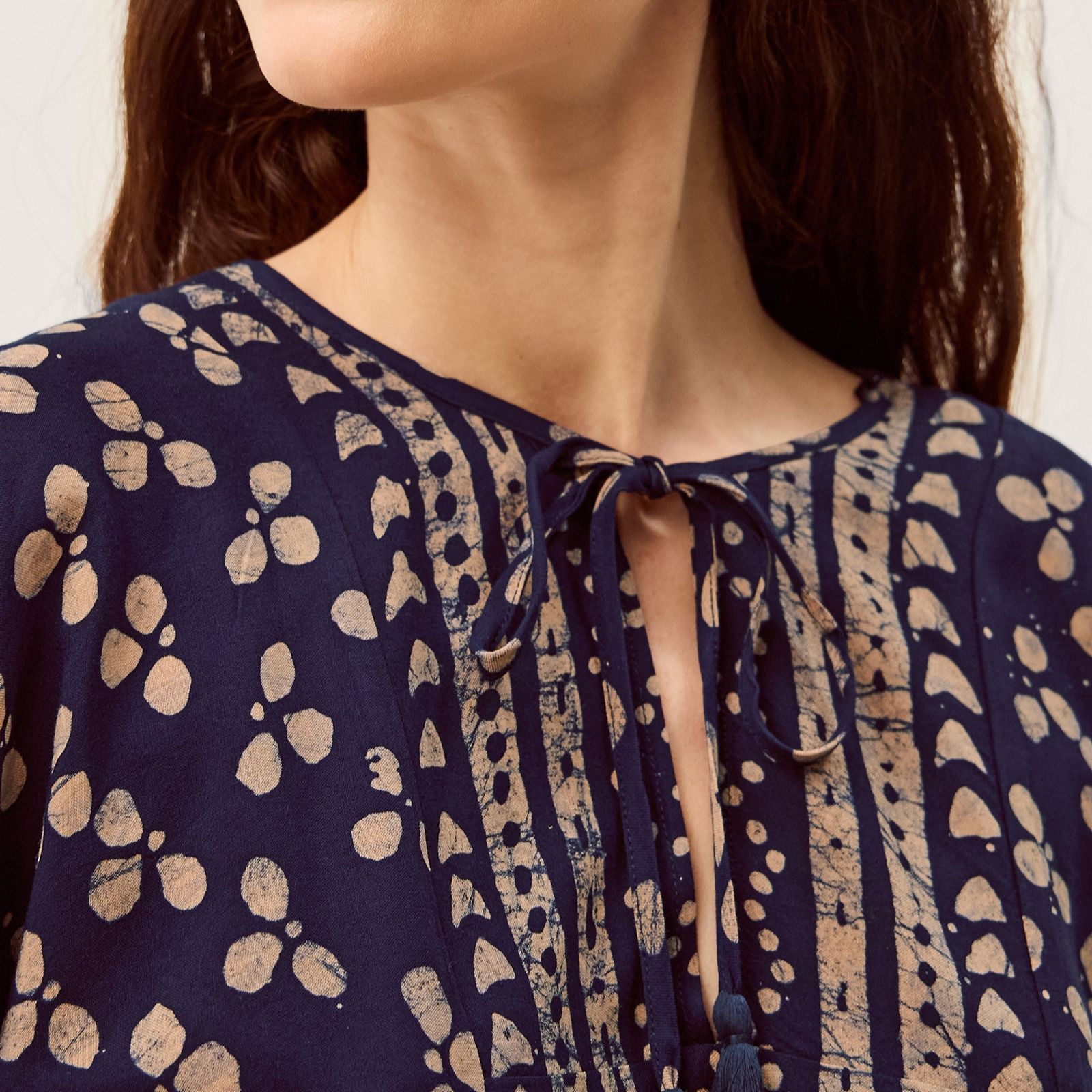 - Tassel tie detail at neckline