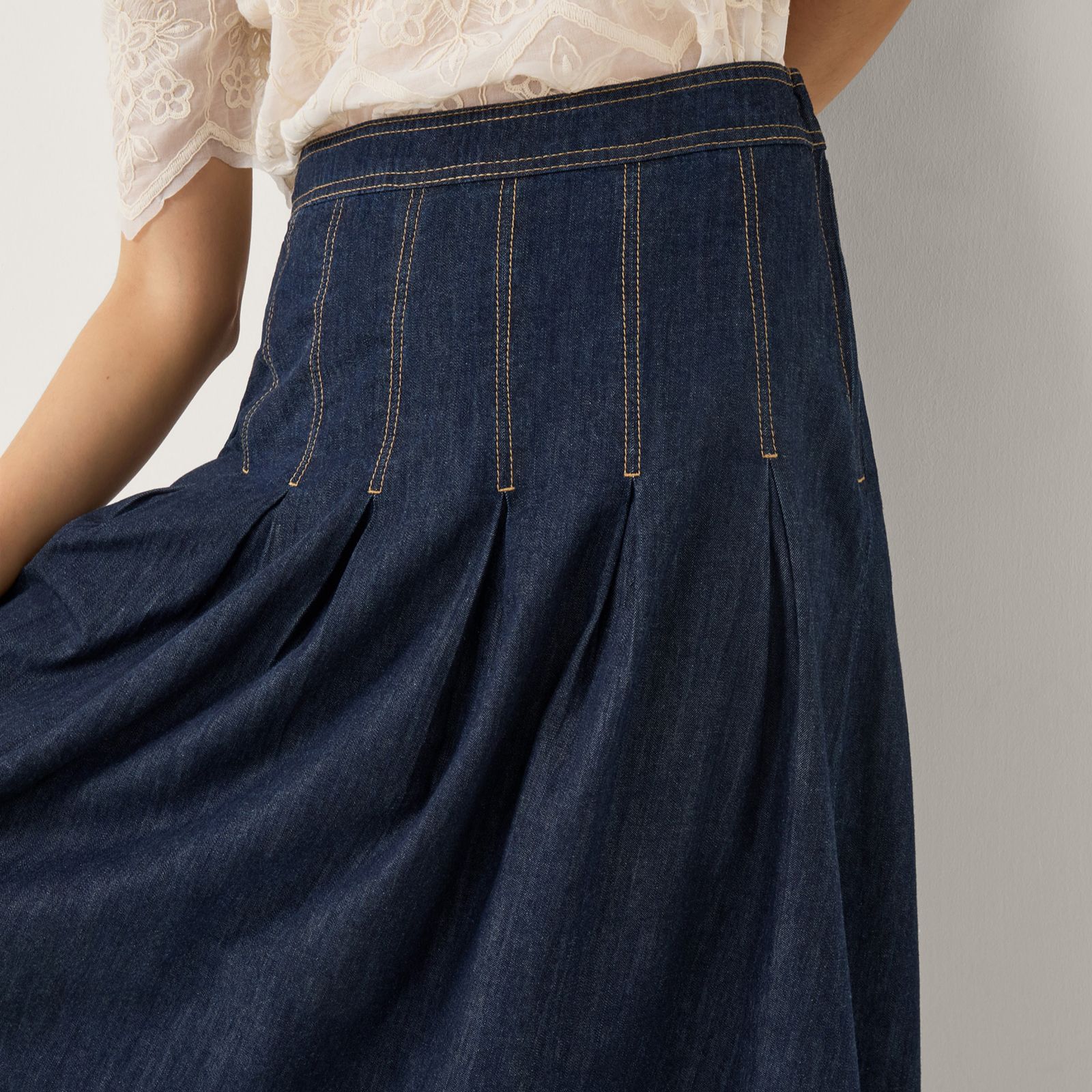 Set the tone for effortless style with the Darcie pleated skirt from Monsoon, a midi-length beauty defined by perfectly-spaced box pleats and contrast seams for a modern twist on a classic silhouette. Its deep shade makes it a year-round staple, ideal for workdays, weekend strolls or evening gatherings. Try it with a crisp white blouse and loafers for a polished look, or style with a chunky knit and knee-high boots when the air turns cool.